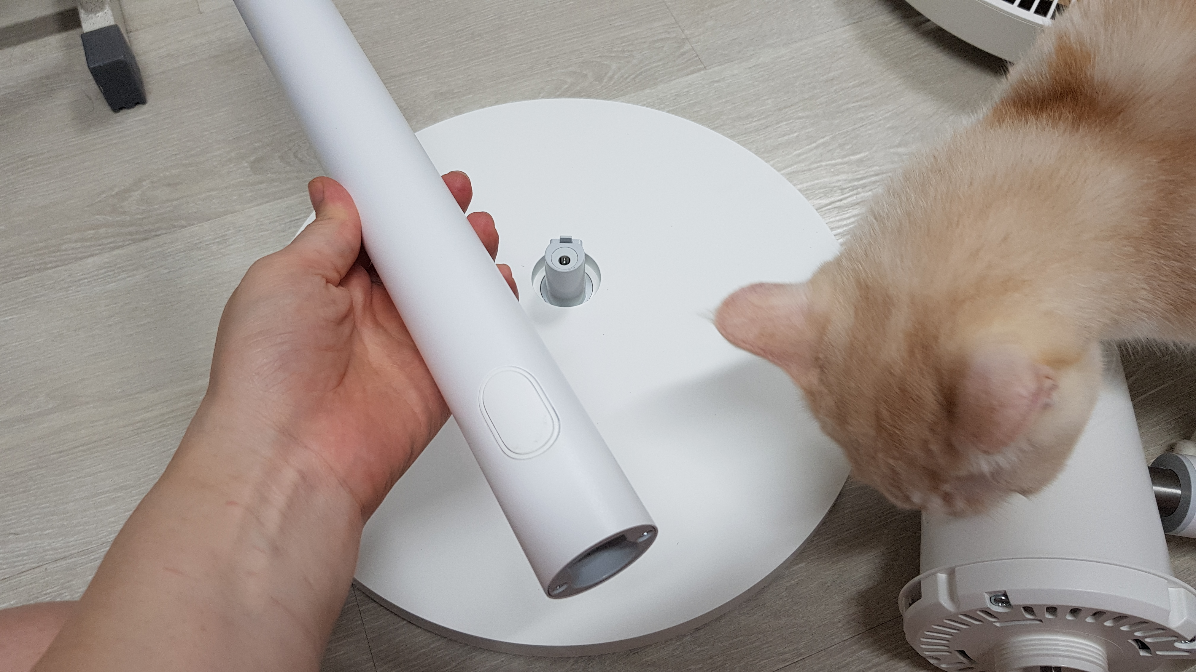 7. 드디어 마지막 전원케이블을 밑에 부분에 잘 꽂아주면 선풍기 추천 샤오미 선풍기 조립 끝!!
