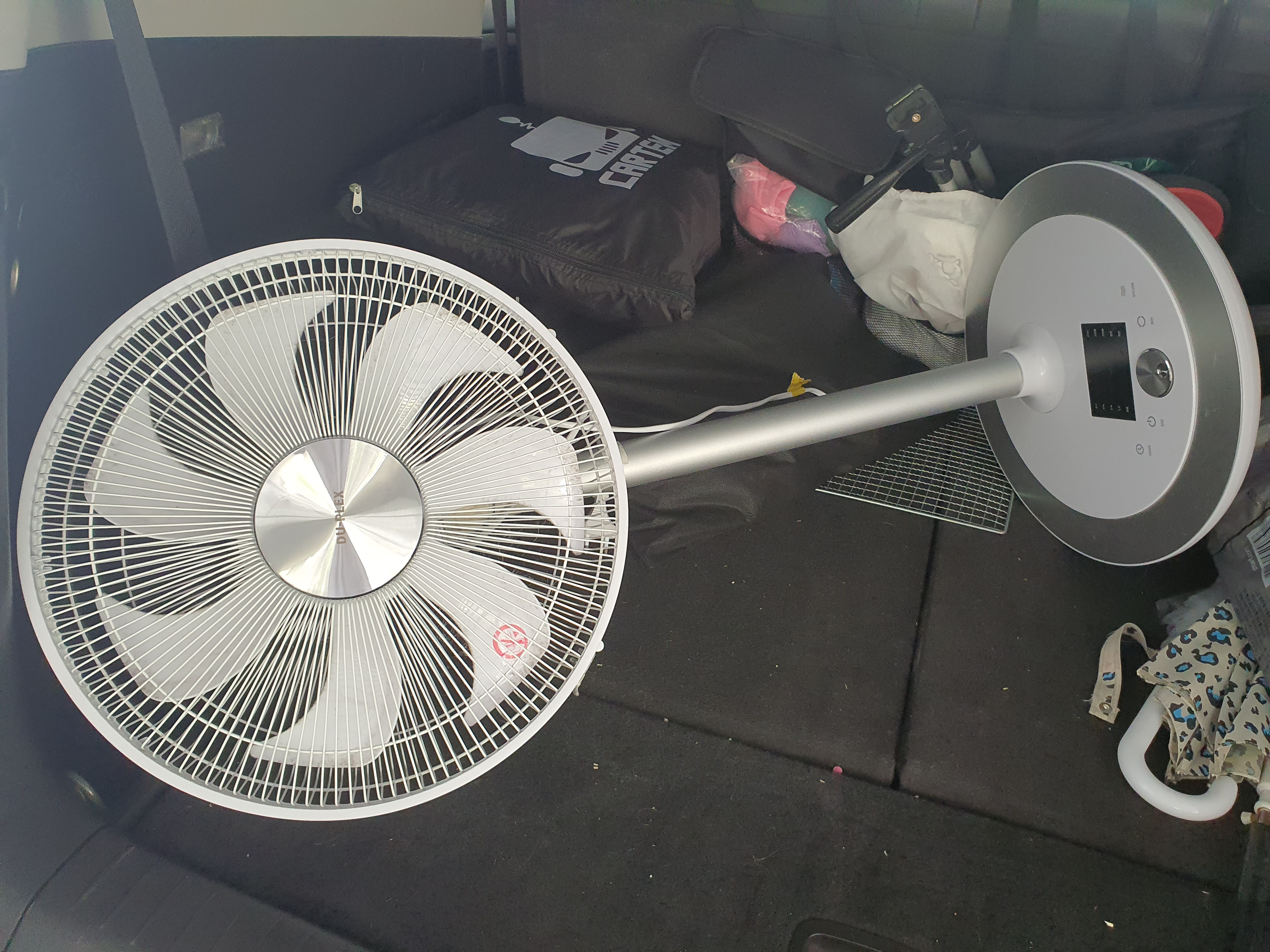 수명이 다된 선풍기를 버리려고 차에다 실어놓은 모습.