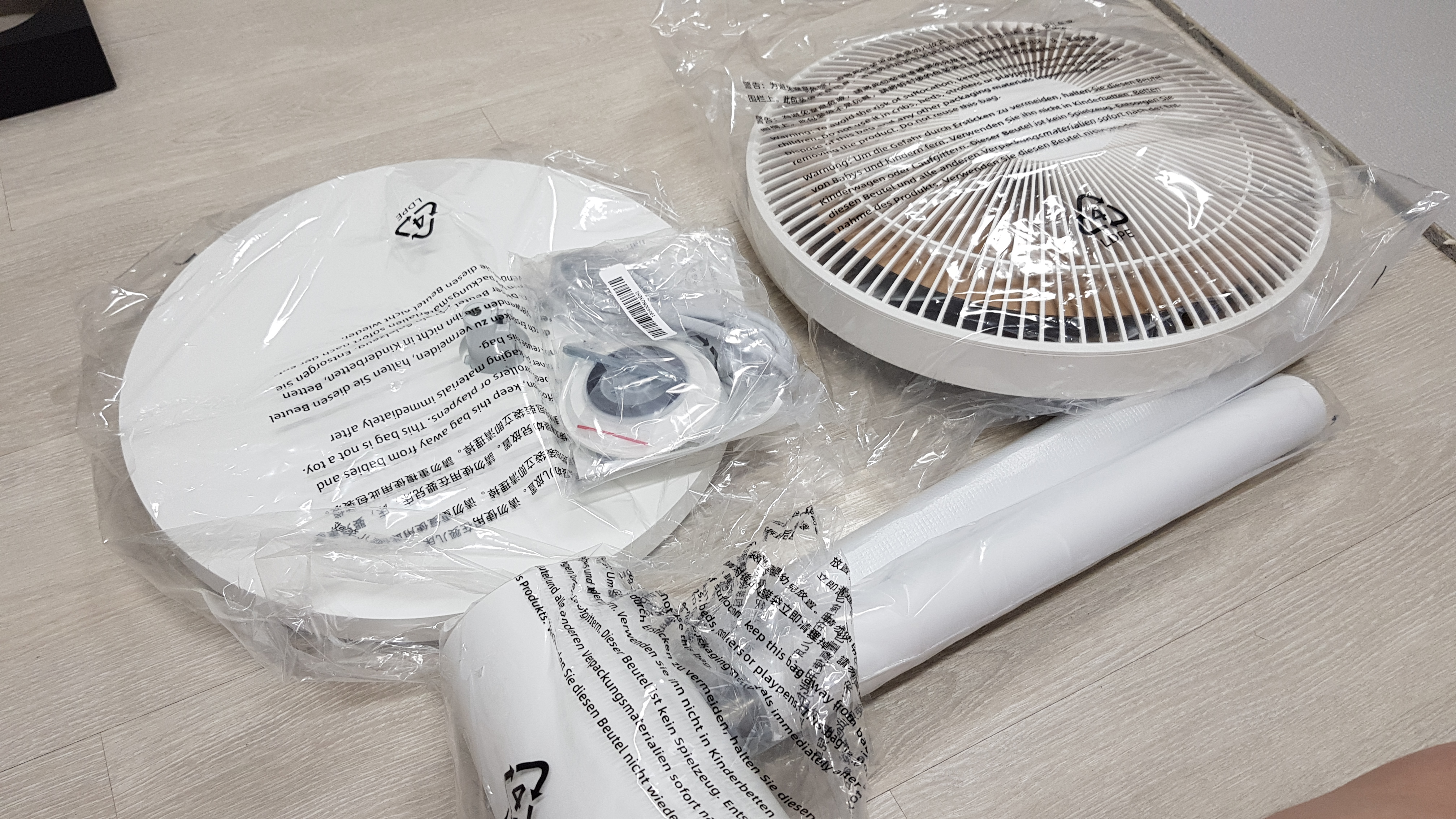 선풍기 추천 샤오미 선풍기 구성품은 스탠드, 날개, 봉2개, 선풍기 덮개, 나사못, 전용스패너, 전원케이블, 사용설명서 등이 있다.