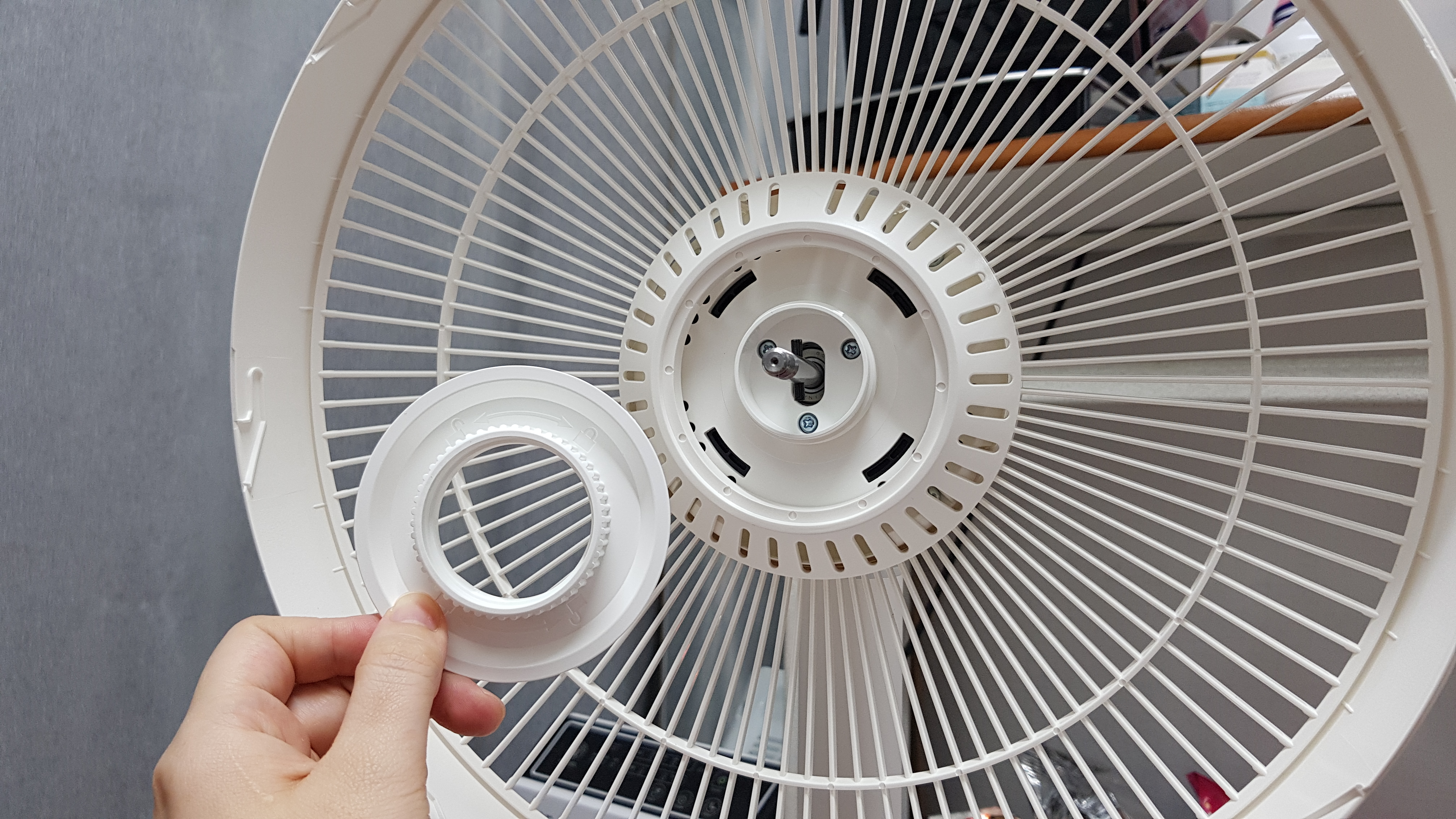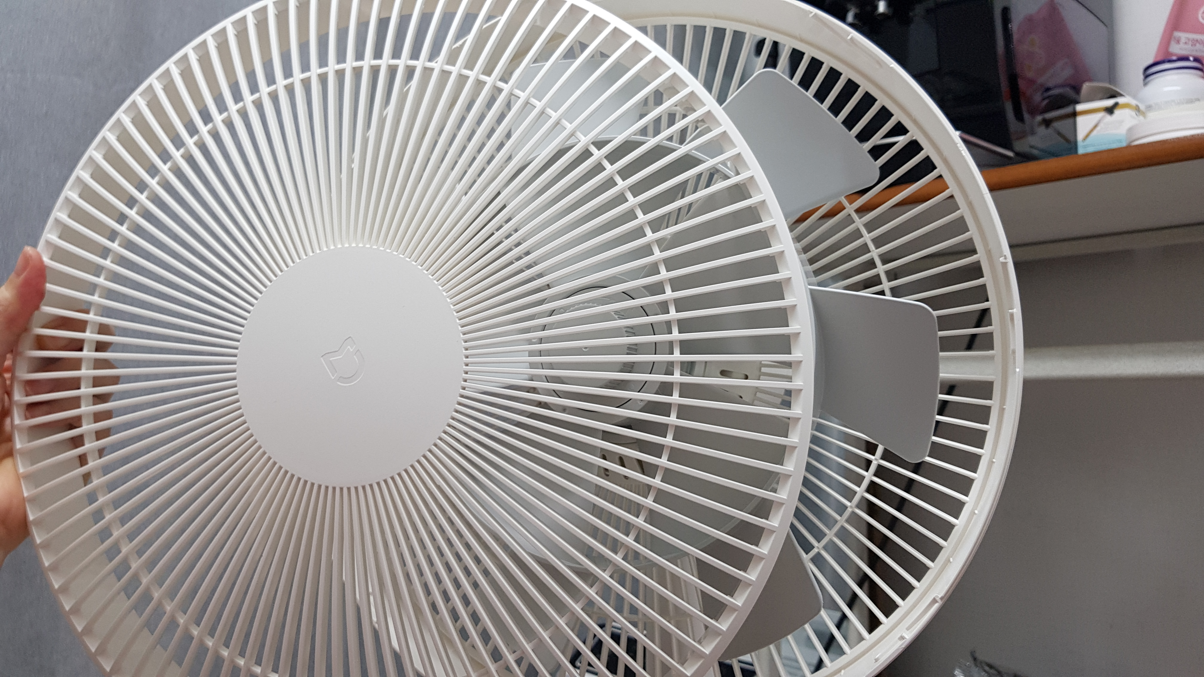 5. 날개부분이 다 고정되면 선풍기 추천 샤오미 선풍기 덮개 부분을 끼운다. 한국 제품처럼 덮개 부분에 고정하는 부분이 없기 때문에 끼우면서 돌려주면 아귀가 딱 맞는다.