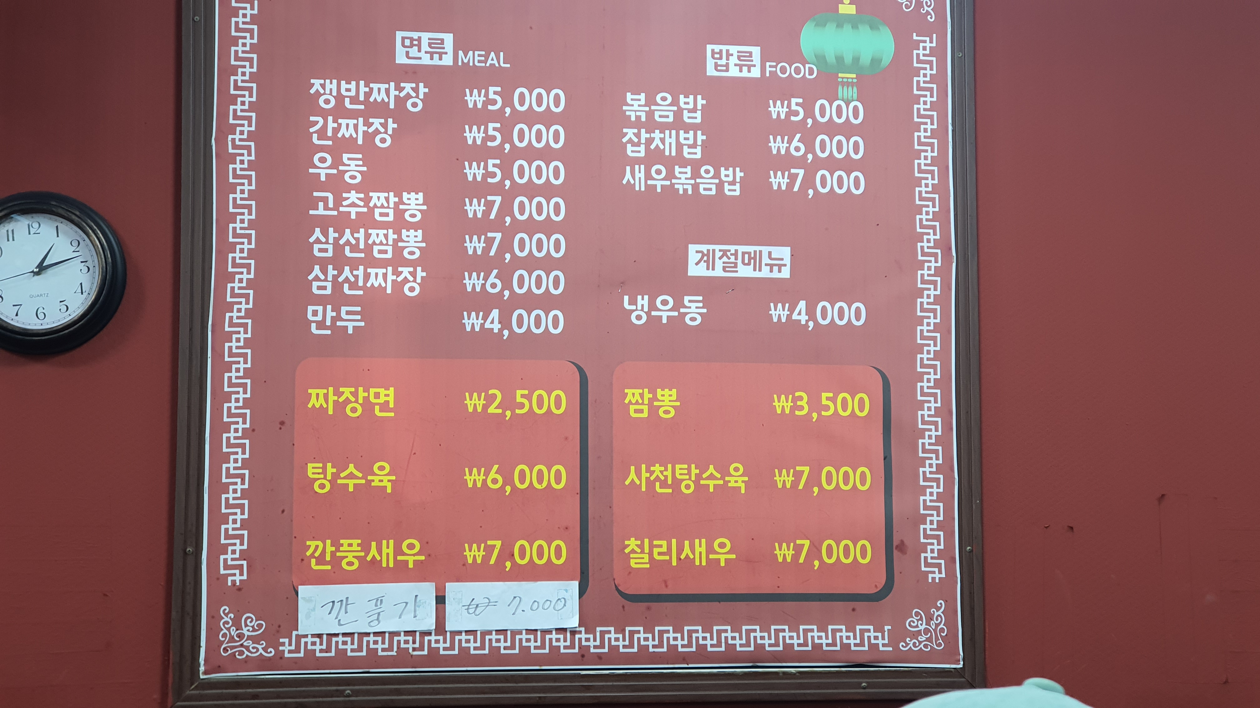 짬뽕 3천5백원 탕수육 6천원.