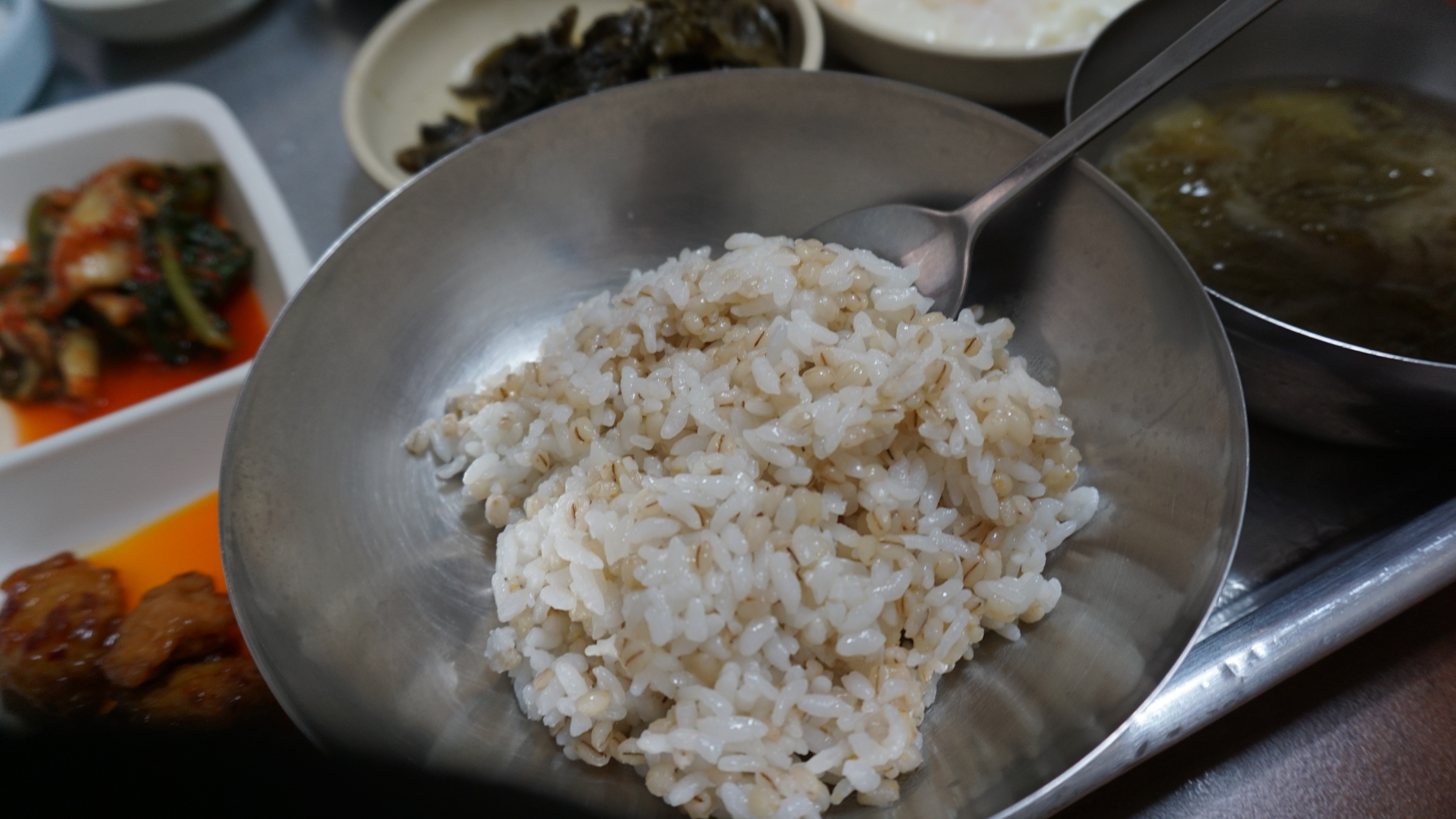 밥은 보리밥이 나오는데,