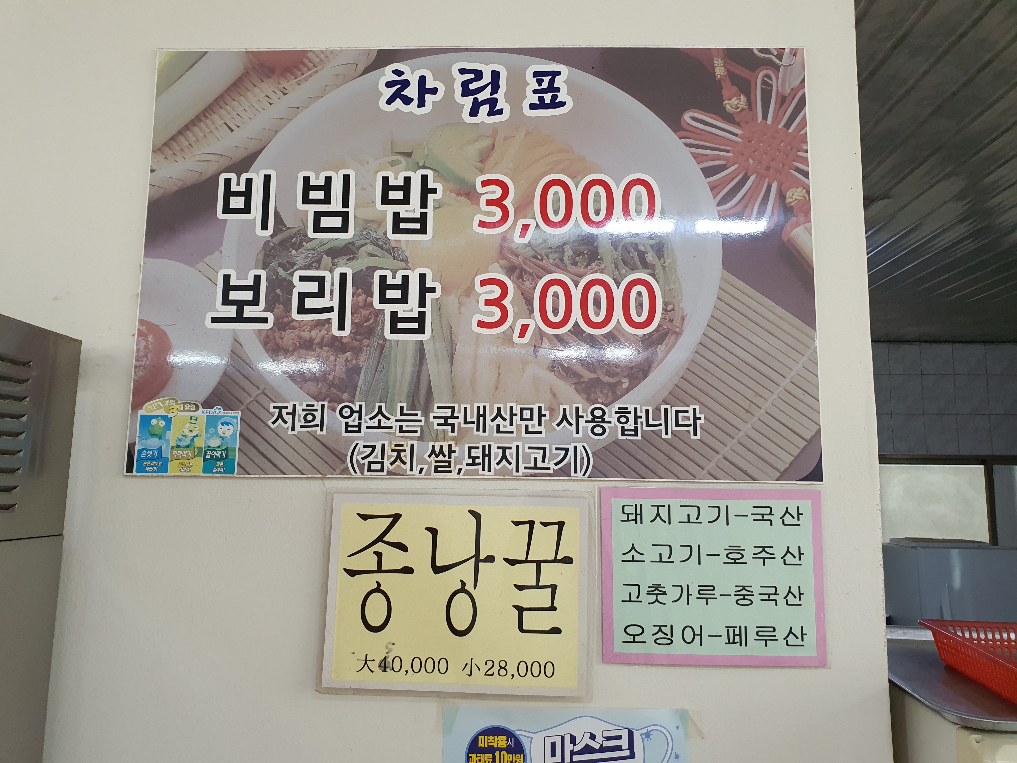 짬뽕 3천5백원 탕수육 6천원.