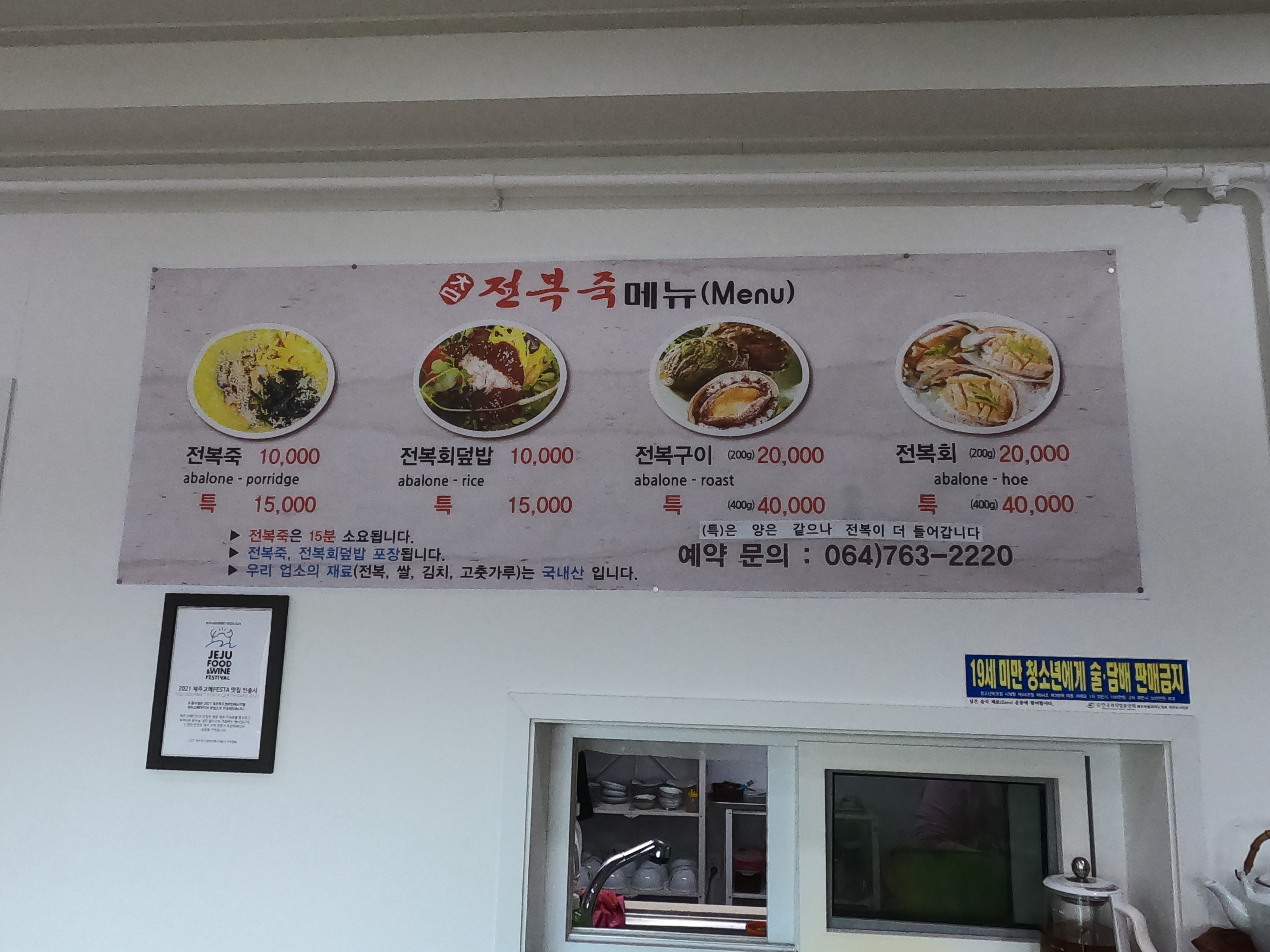 제주 전복죽 가게의 메뉴는