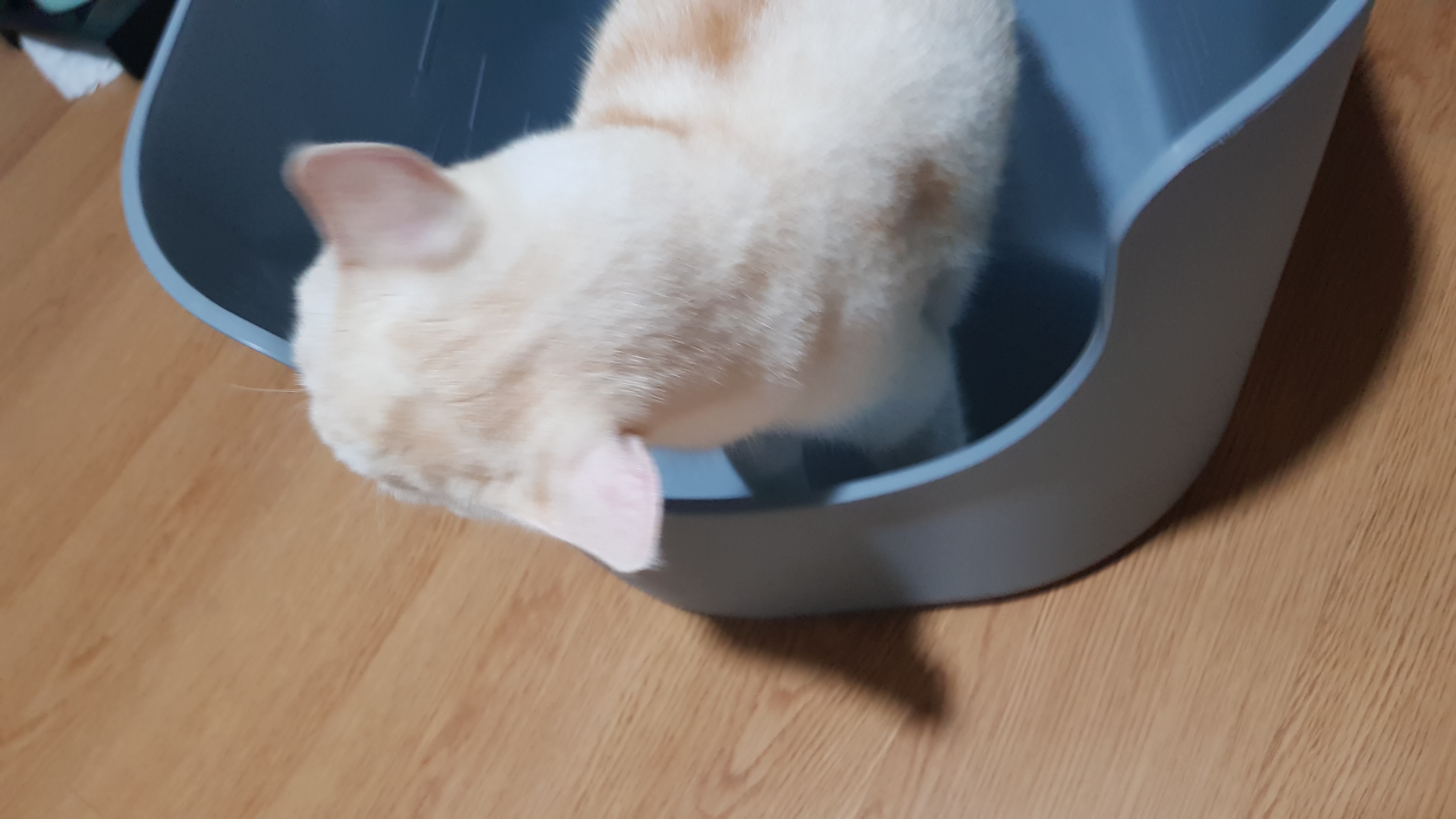 똥을 싸고 한 바퀴씩 도는데 작은 고양이 화장실에서는 돌다가 화장실 벽면에 똥을 가끔 묻히고 나오는데, 강집사 화장실은 확실히 커서 벽에 똥칠할 일은 없을것 같다.