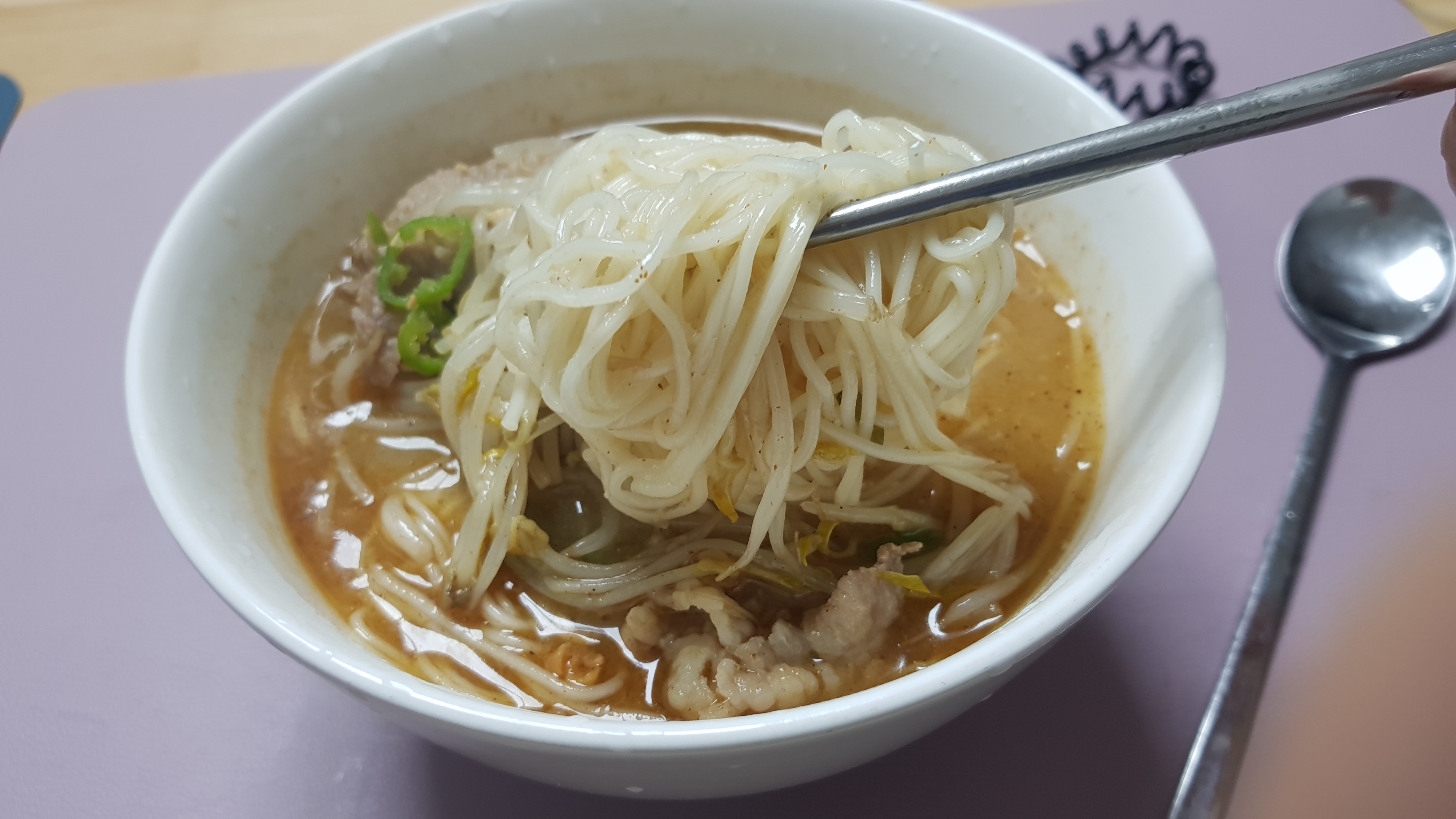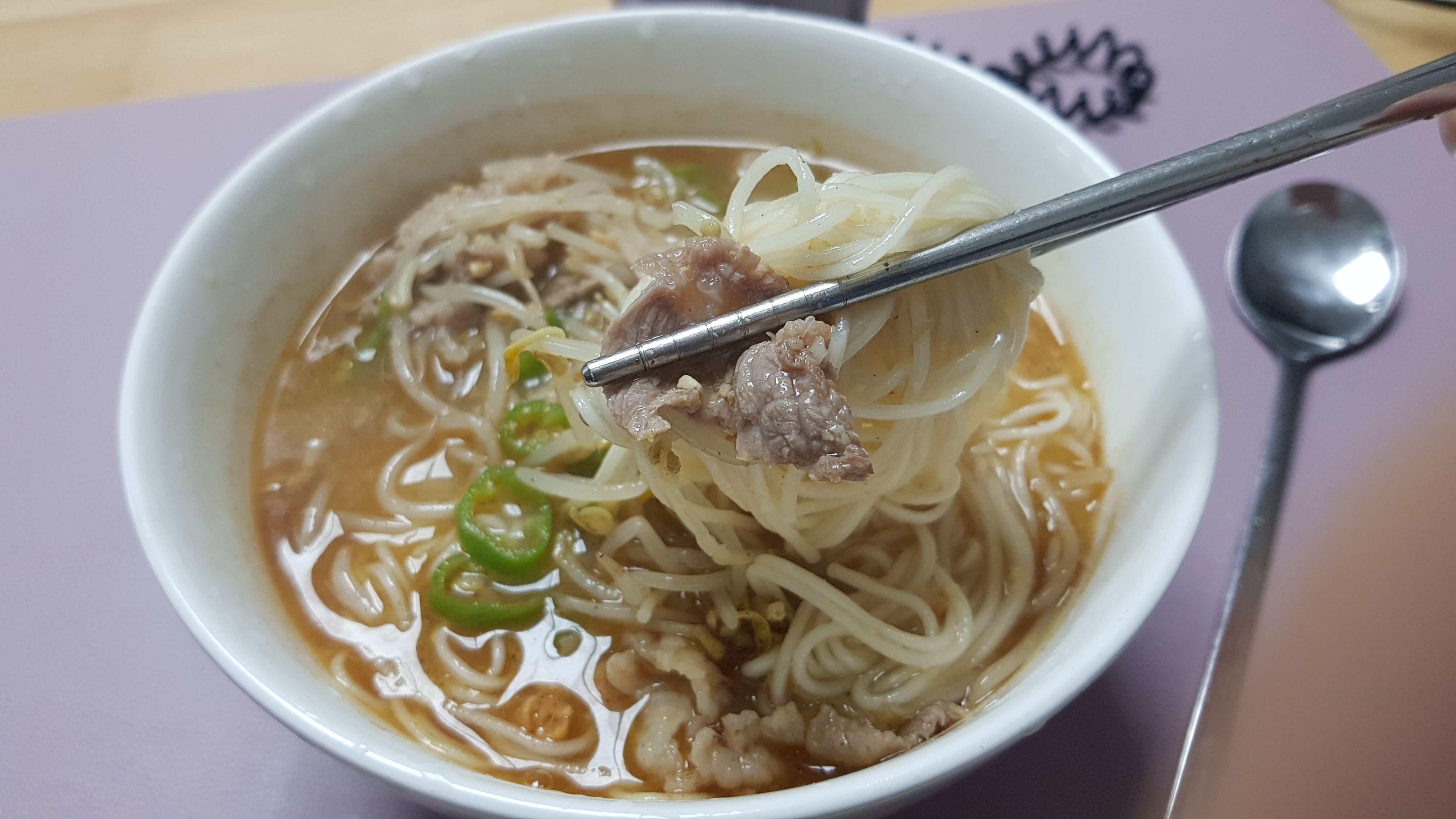 재료 : 소면, 청양고추, 다시팩, 된장양념, 차돌박이, 숙주나물, 다진마늘
