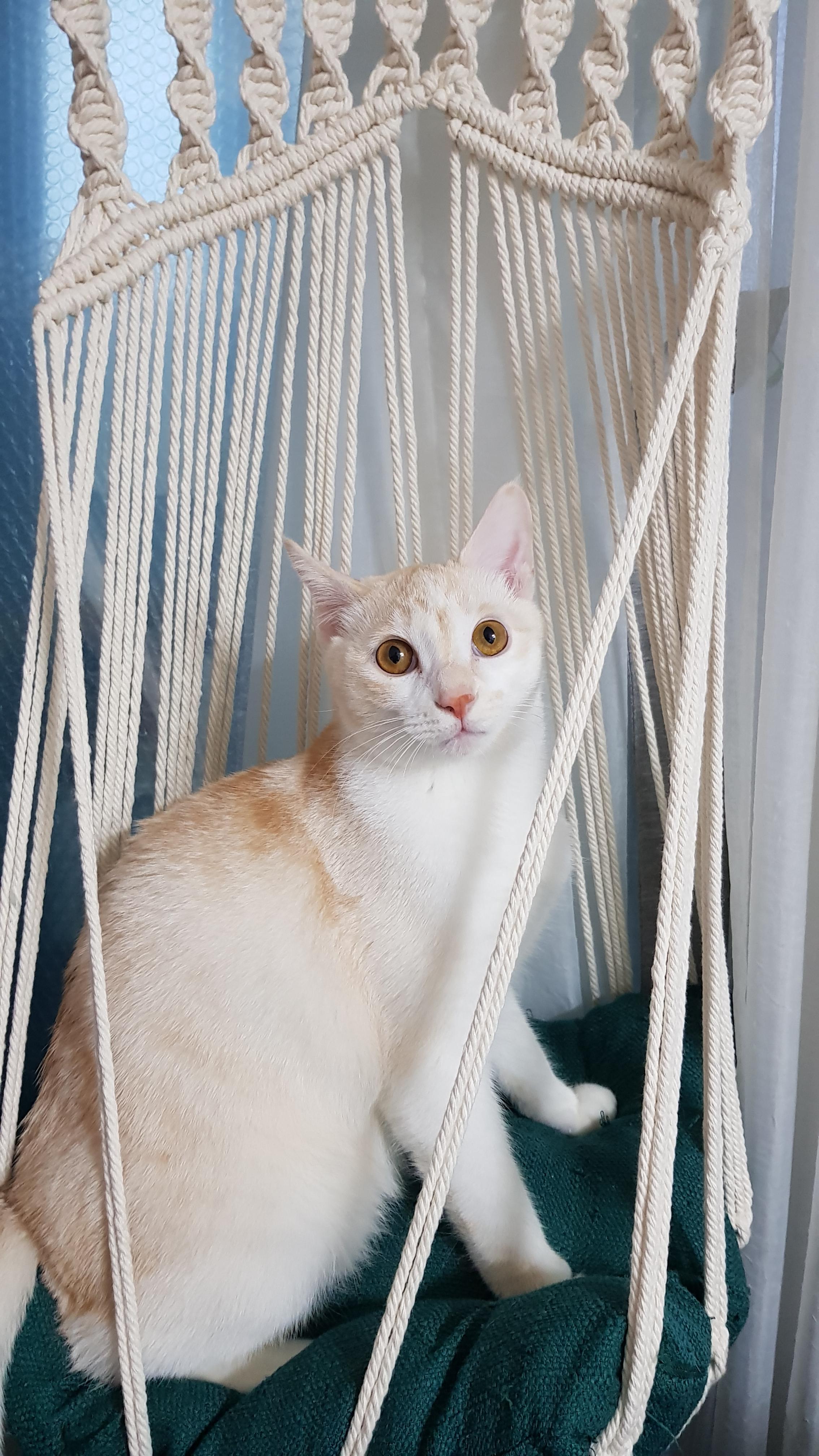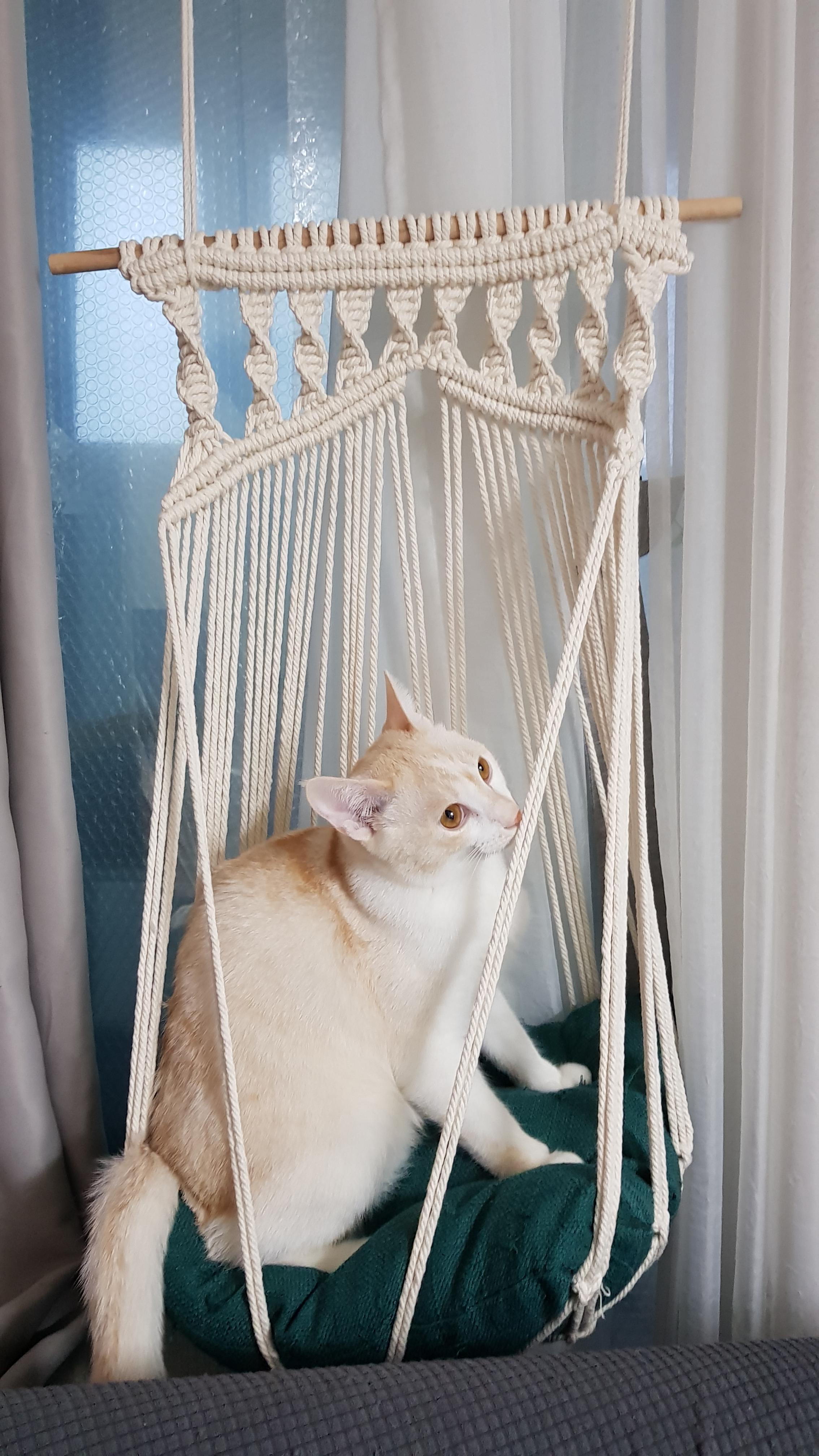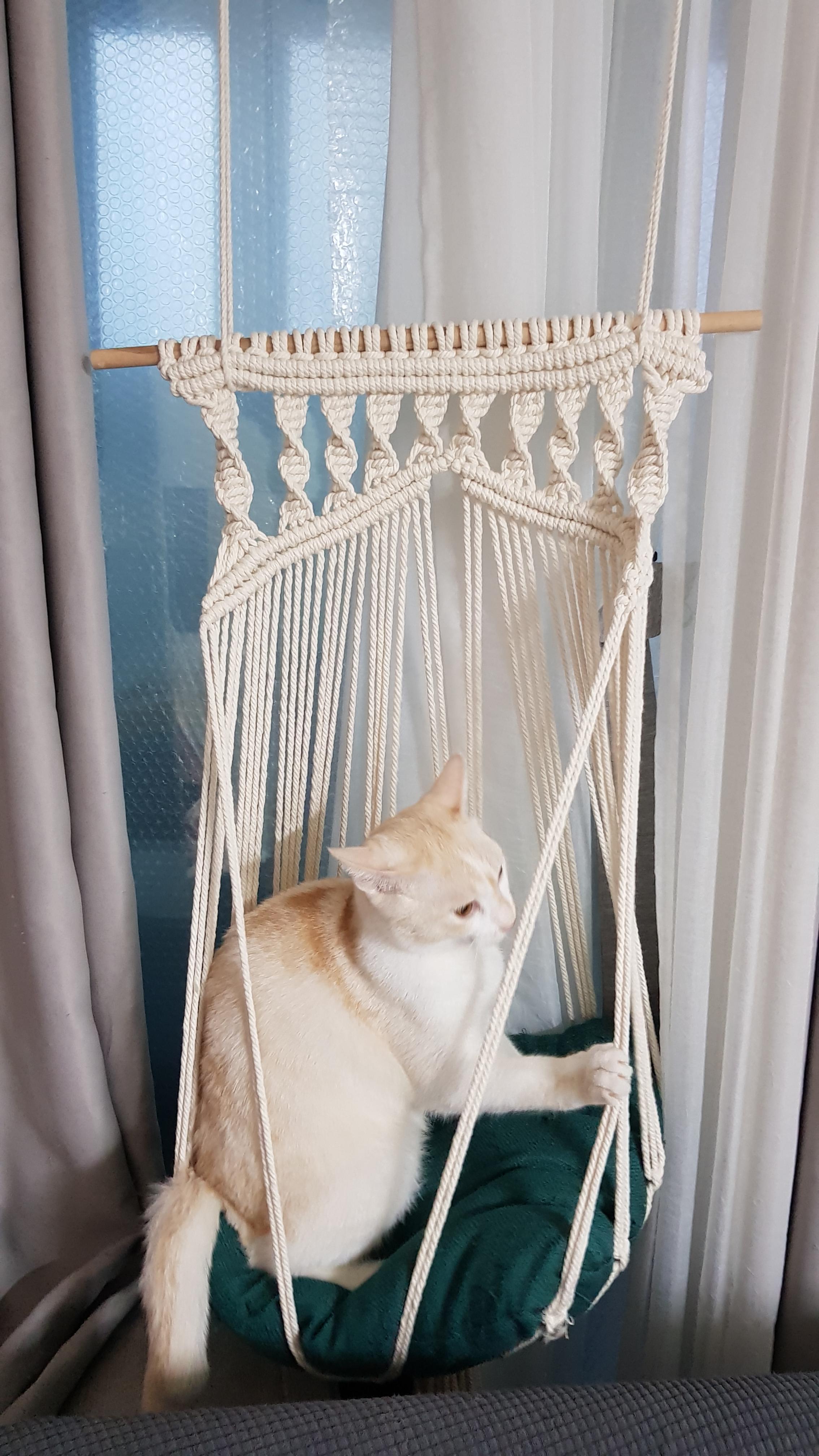일반 해먹과는 달리 마크라메 고양이 해먹으로 알려져 있는데