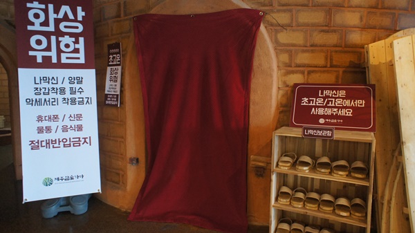 때문에 이렇게 나막신을 신고 들어가야 한다.