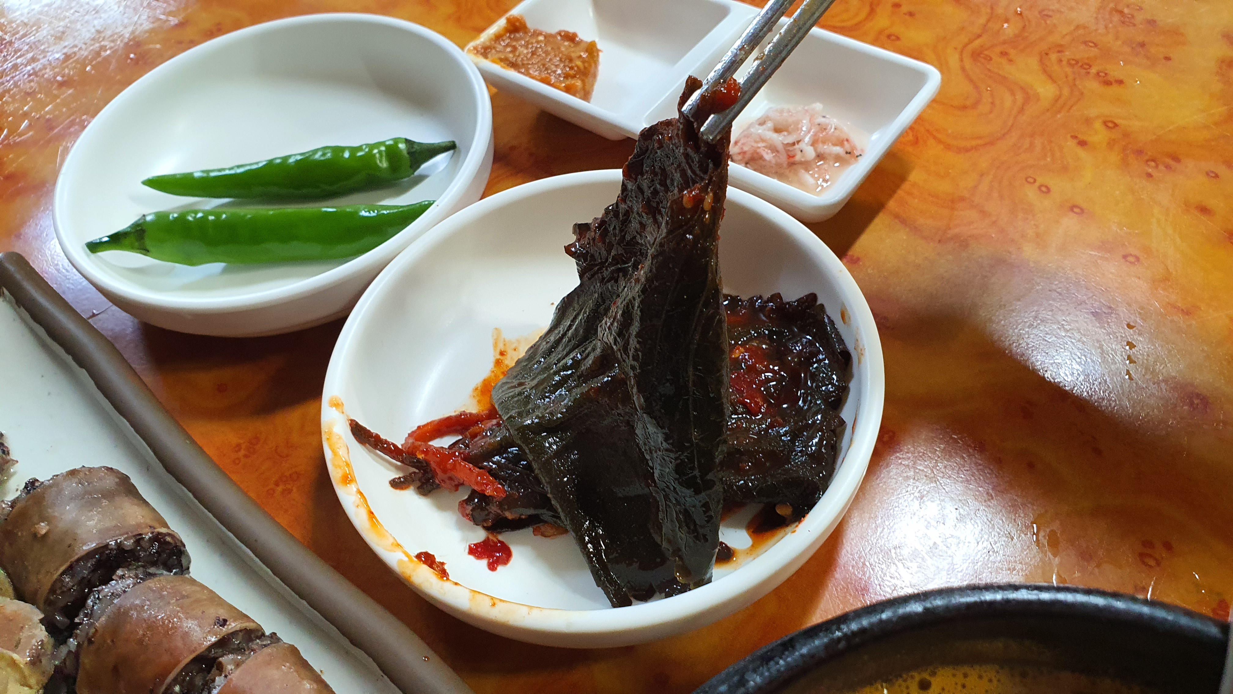 바로 깻잎장아찌와 순대를 함께 싸먹으면 굉장히 맛있다고한다.