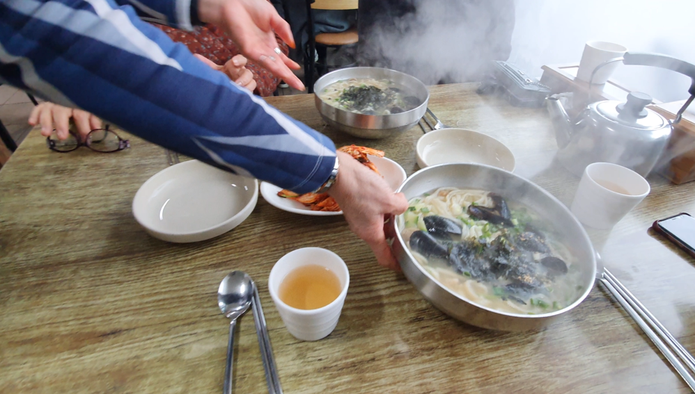 점심에 무엇을 먹을까 고민하다가 가족들과 함께 해물 칼국수로 결정!