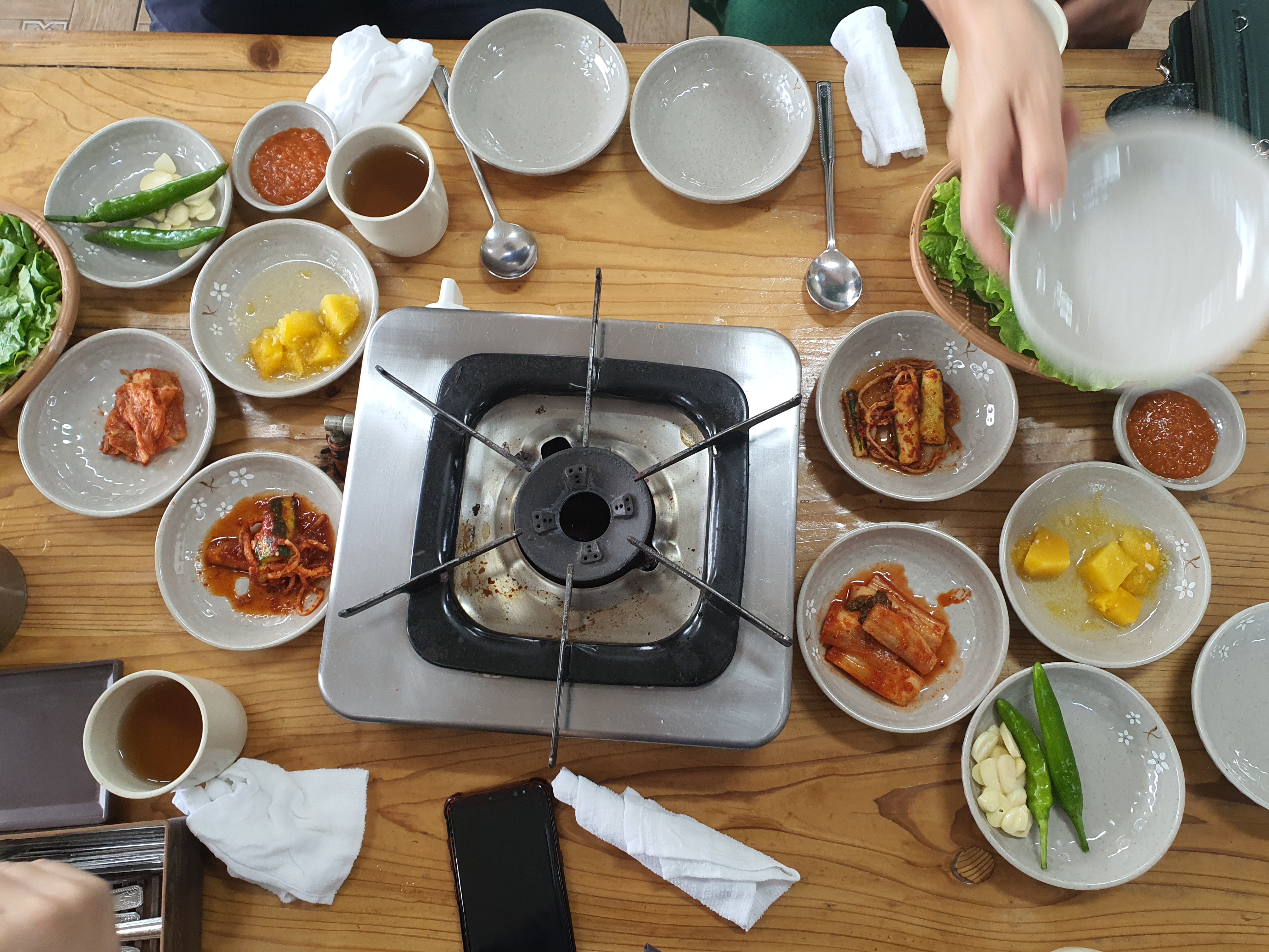 이렇게 테이블마다 가스레인지가 있어 직접 불 조절을 하면서 먹을 수 있어요.