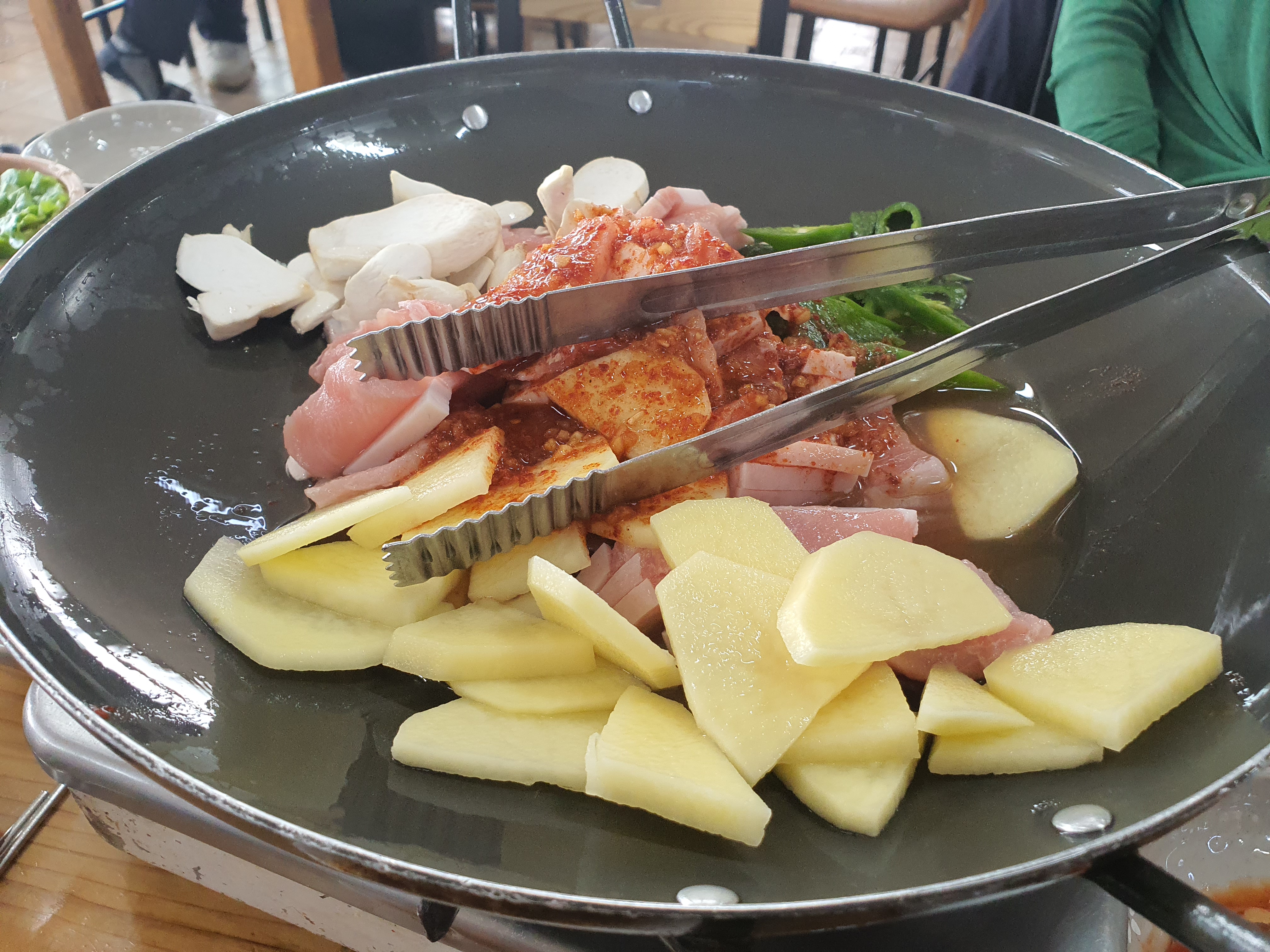 감자도 잘 익어서 두루치기와 굉장히 맛이 잘 어우러지고, 야채도 많아서 더욱 배부른 느낌이에요.