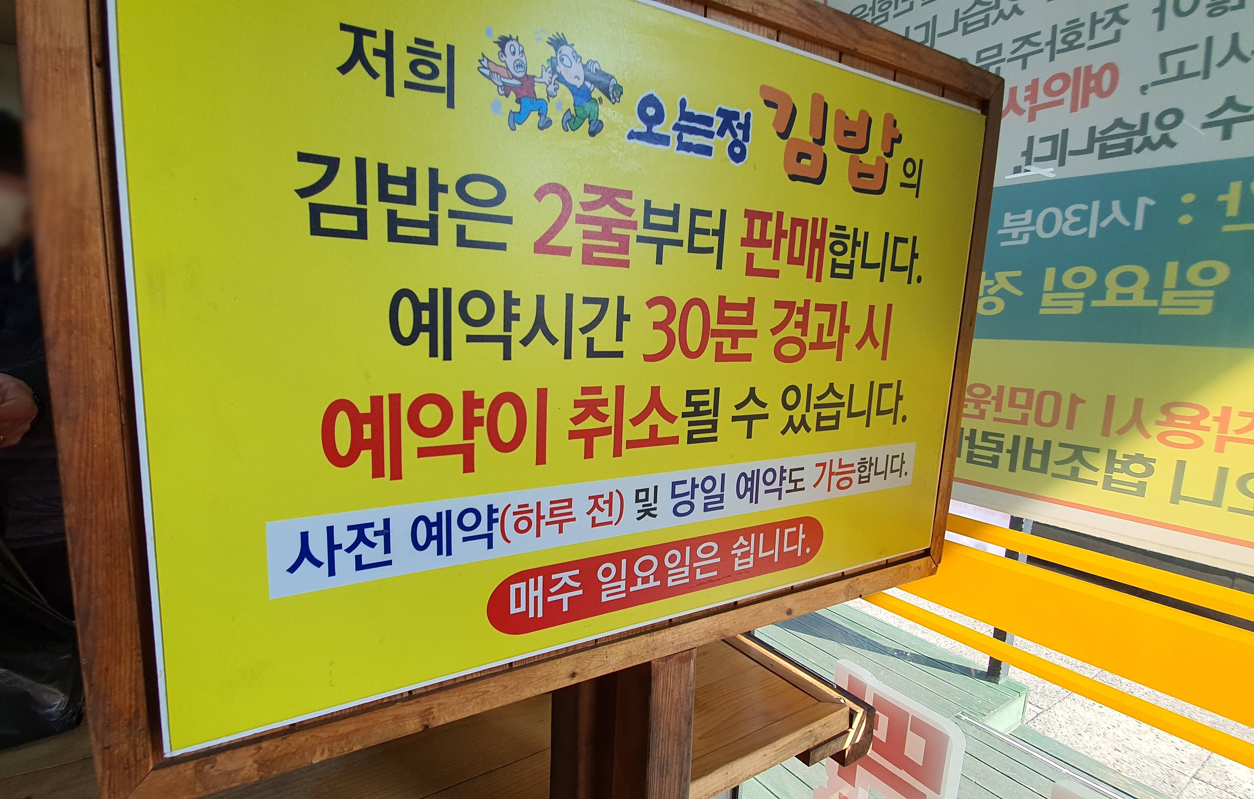 김밥은 2줄부터 판매를 하고 예약을 했다가 30분 이상 찾아가지 않으면 예약이 취소돼요.