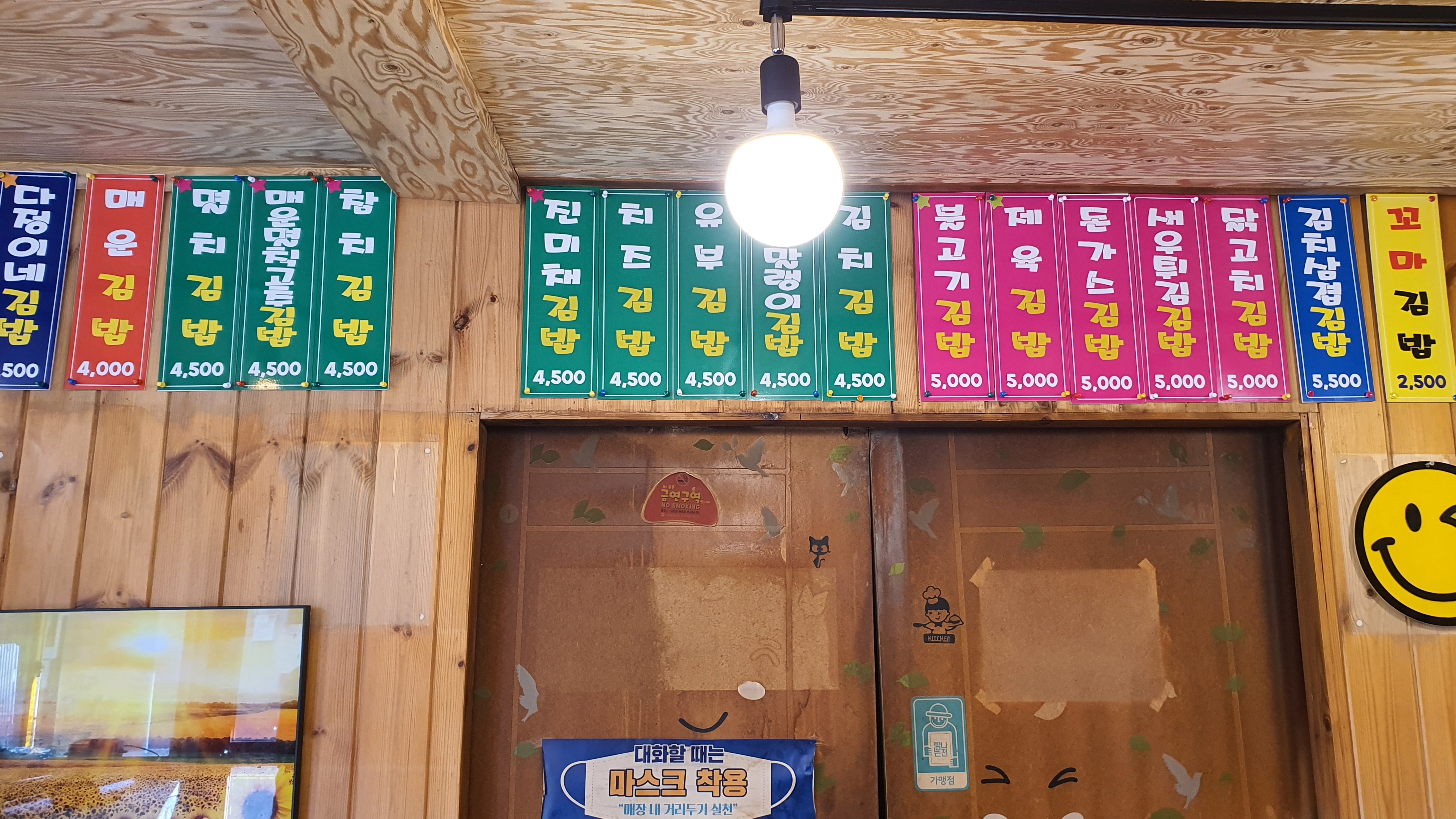 인기 좋은 김밥 맛집이라서 이미 방송도 많이 출연하고 연예인들도 많이오고, 벽면에는 빼곡히 싸인도 정말 많아요.