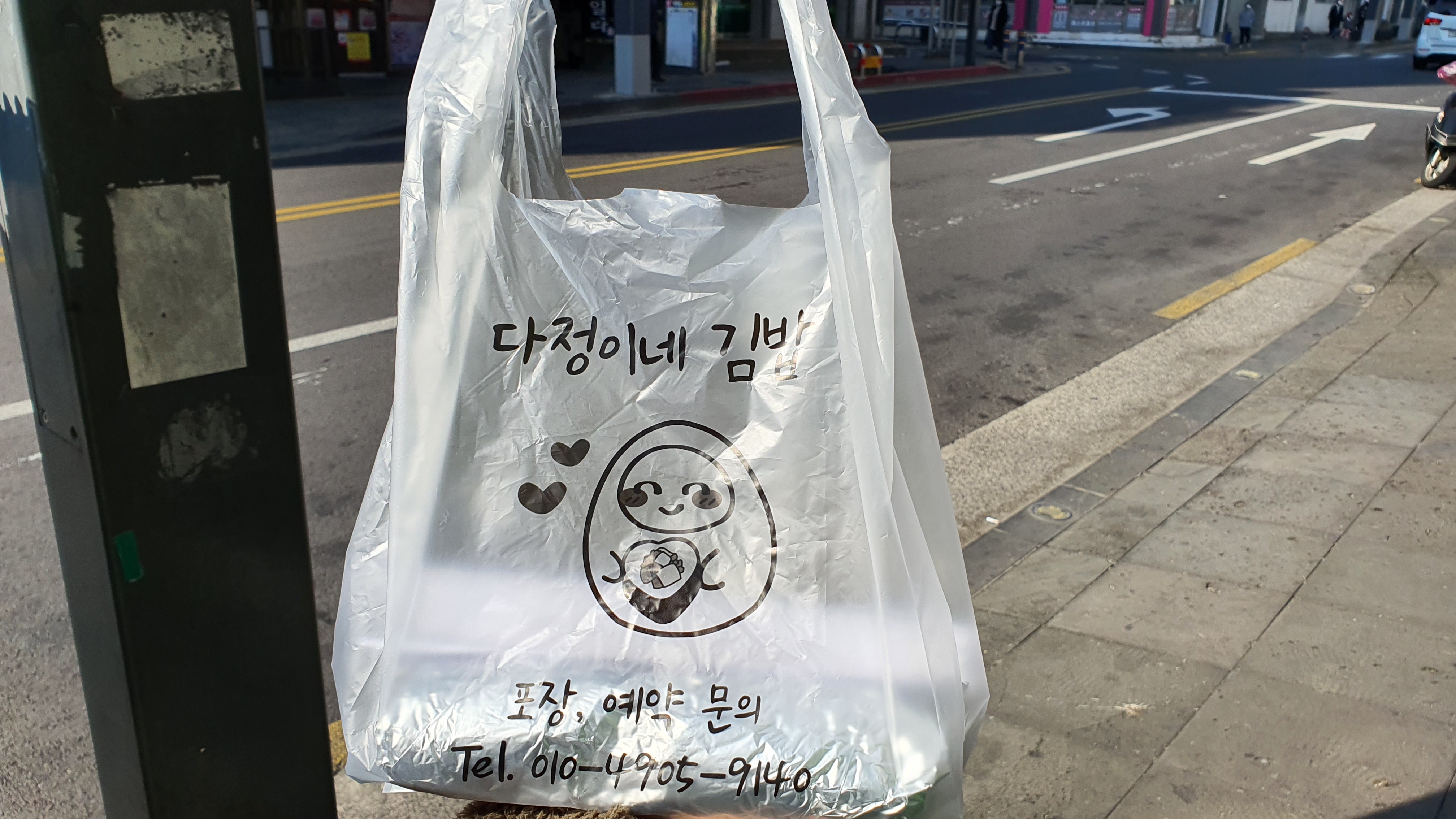 제주 다정이네 김밥집에서는 일반김밥과 진미채김밥을 하나씩 사고 왔어요.
