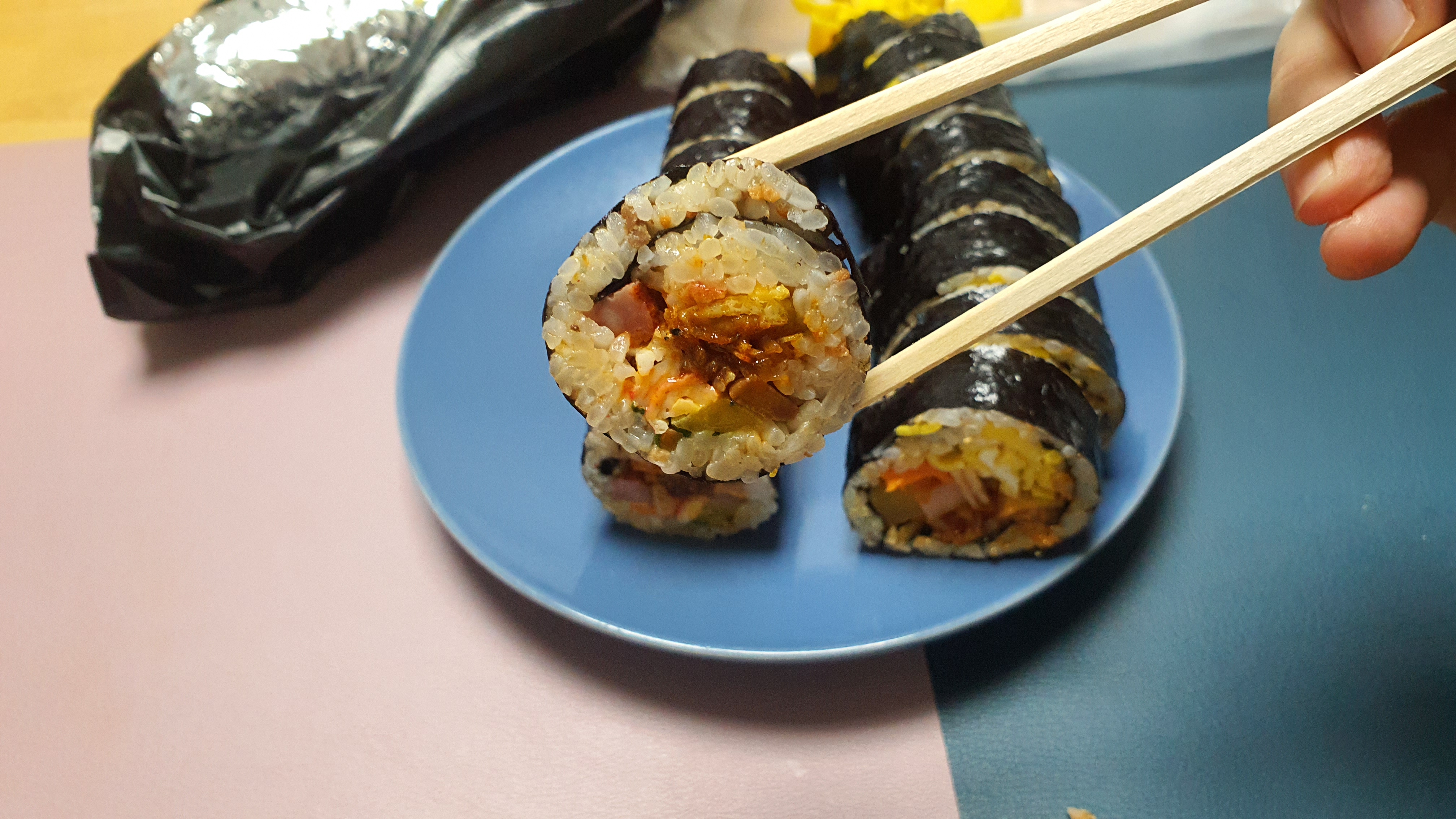 김밥먹기 참 힘든 느낌이 팍팍 들어요.