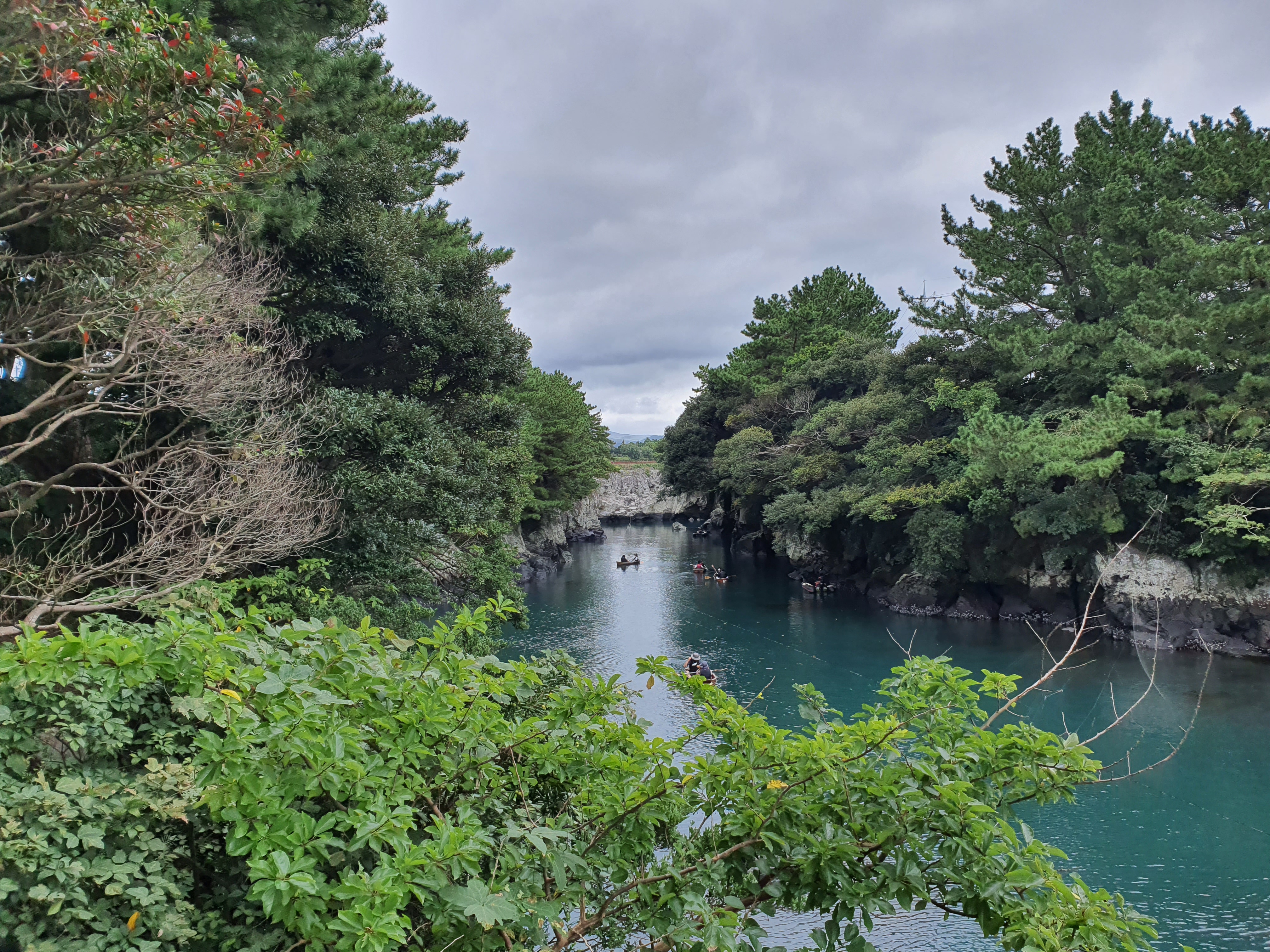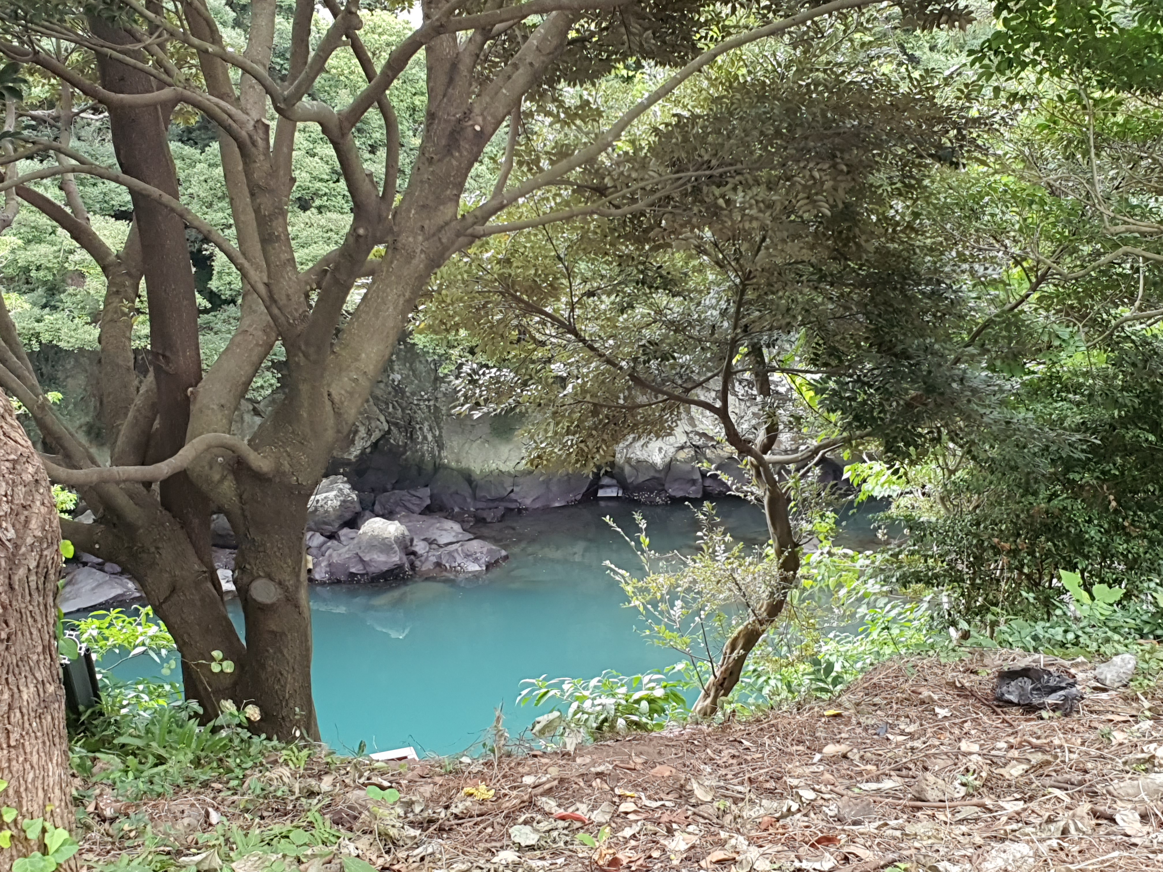 제주 쇠소깍의 물색깔은 굉장히 신비로운데, 어느날은 이렇게 민트색 색상을 하고 있고, 어늘날은 굉장히 진한 색도 띄고 있다.