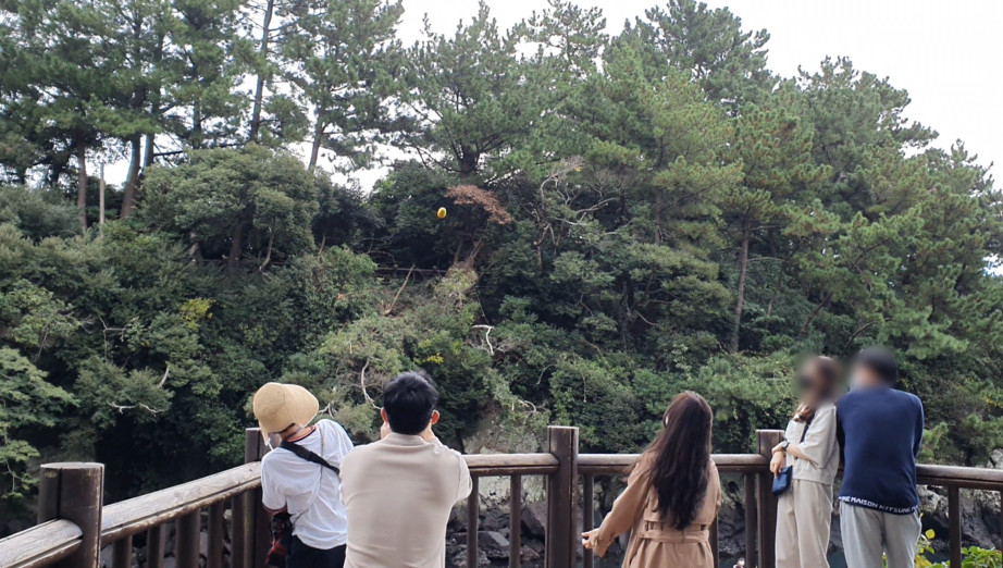 12월 귤시즌에는 이렇게 테왁에서 전망대에 있는 사람들에게 귤도 퍼포먼스로 던지며 보여준다.