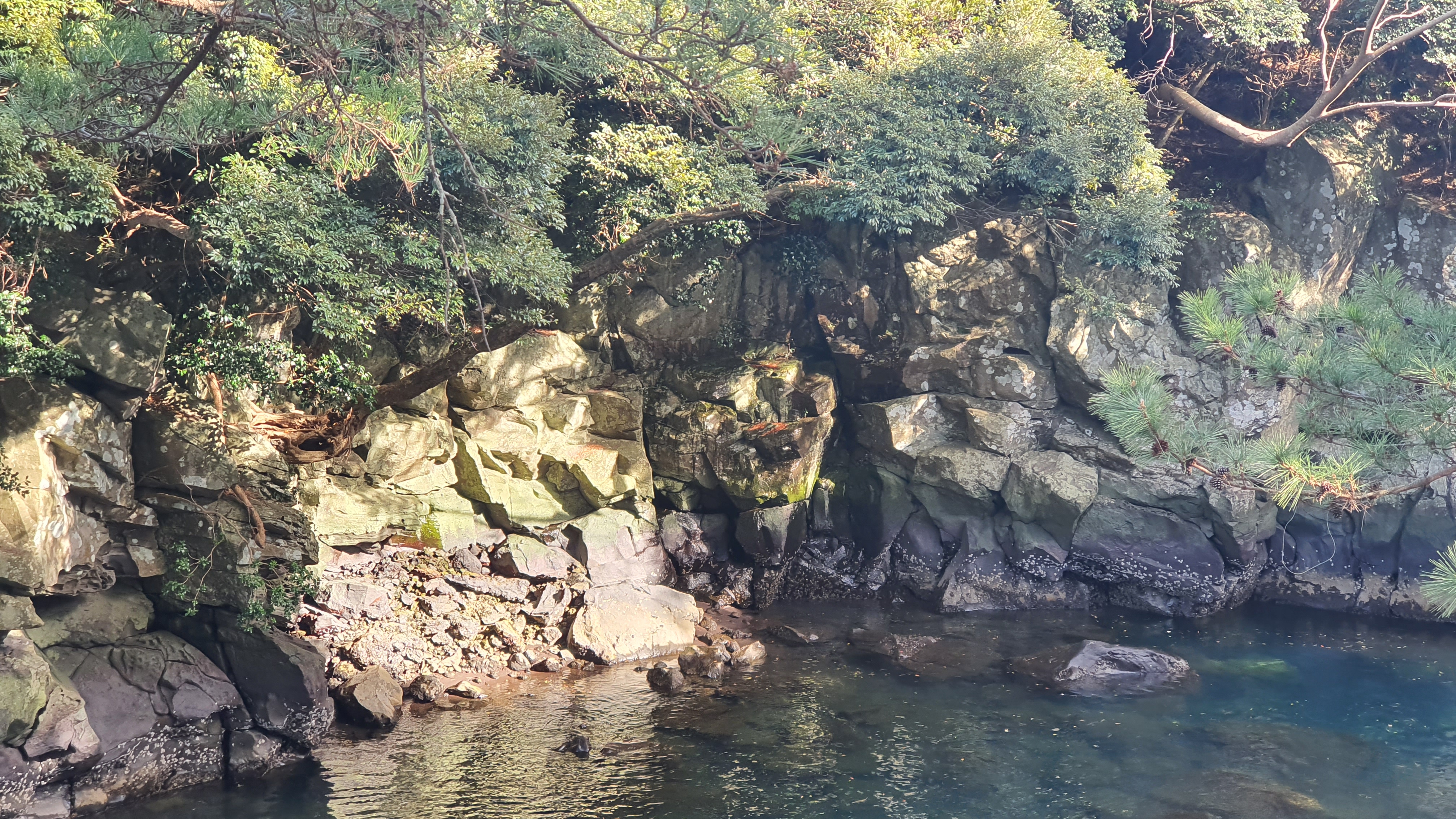물이 가득 찰때는 바위에 검은색까지 물이 올라오는데, 이렇게 바위에 경계선이 생겨있다는것이 매우 신비롭다.