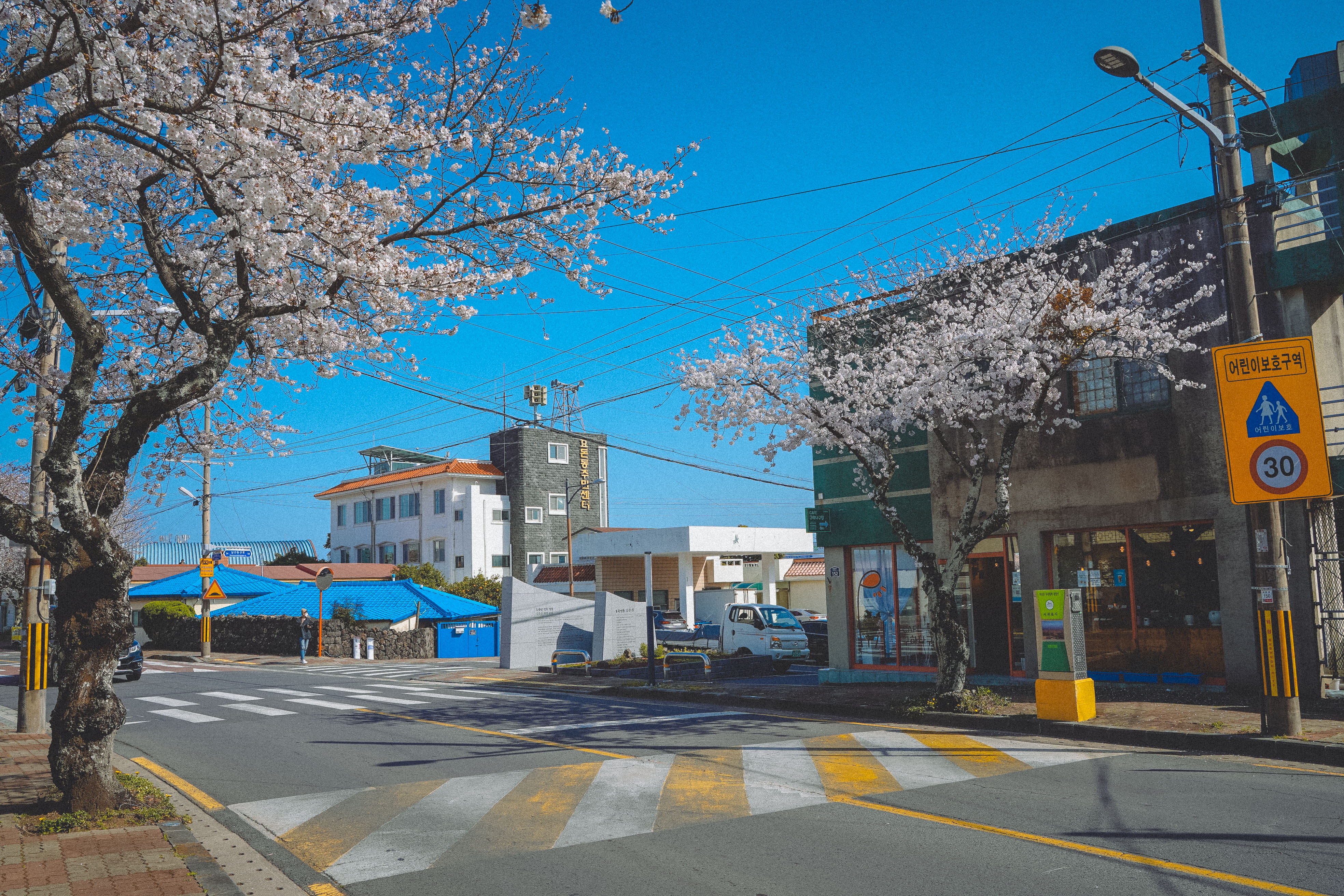 효돈초등학교, 효돈중학교 부터 쭉 마을길이 벚꽃으로 되어있는데, 굉장히 아름다고 정겨운 시골모습이 가득한 곳이에요.