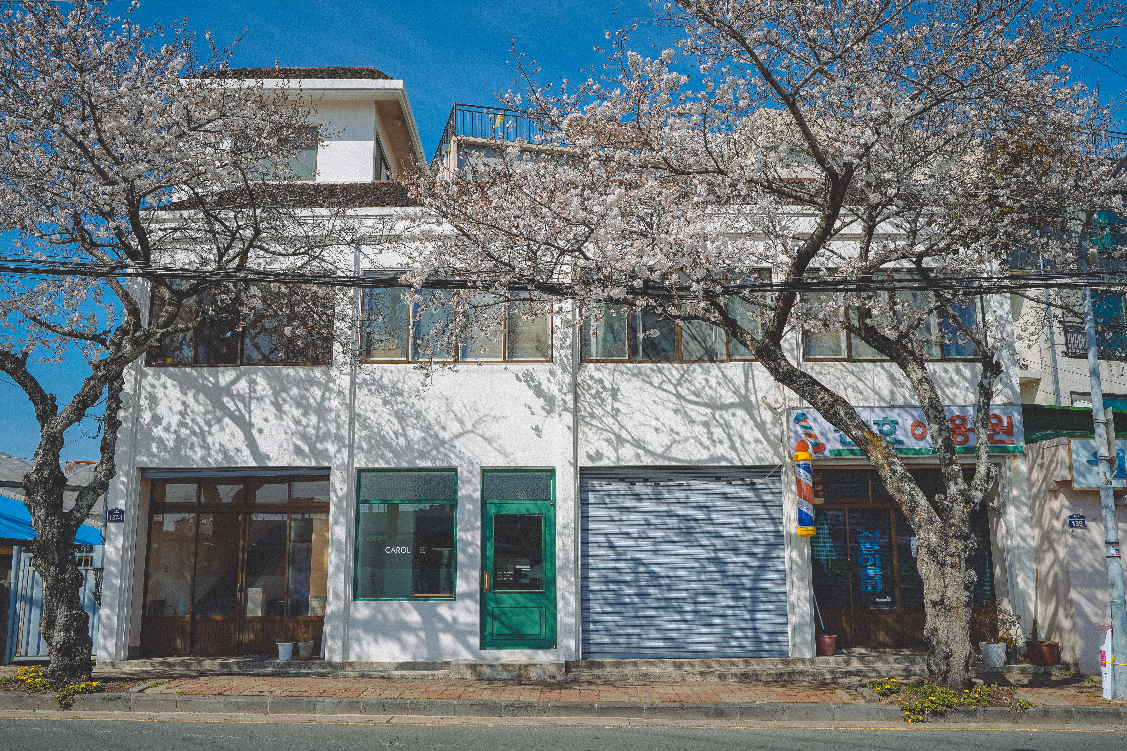 옛날 느낌의 이용원도 벚꽃나무와 감성적으로 너무 예쁜 사진이 찍혔어요.
