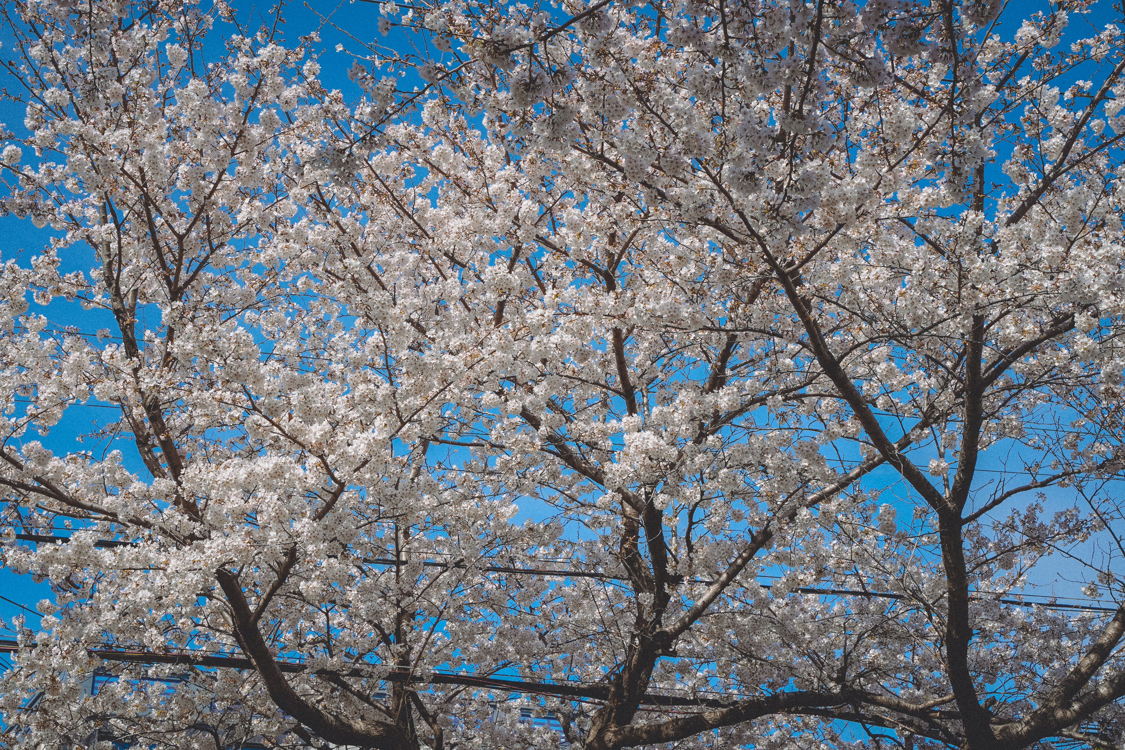 이 나무에 피어난 벚꽃은 완전 만개한 모습이에요.