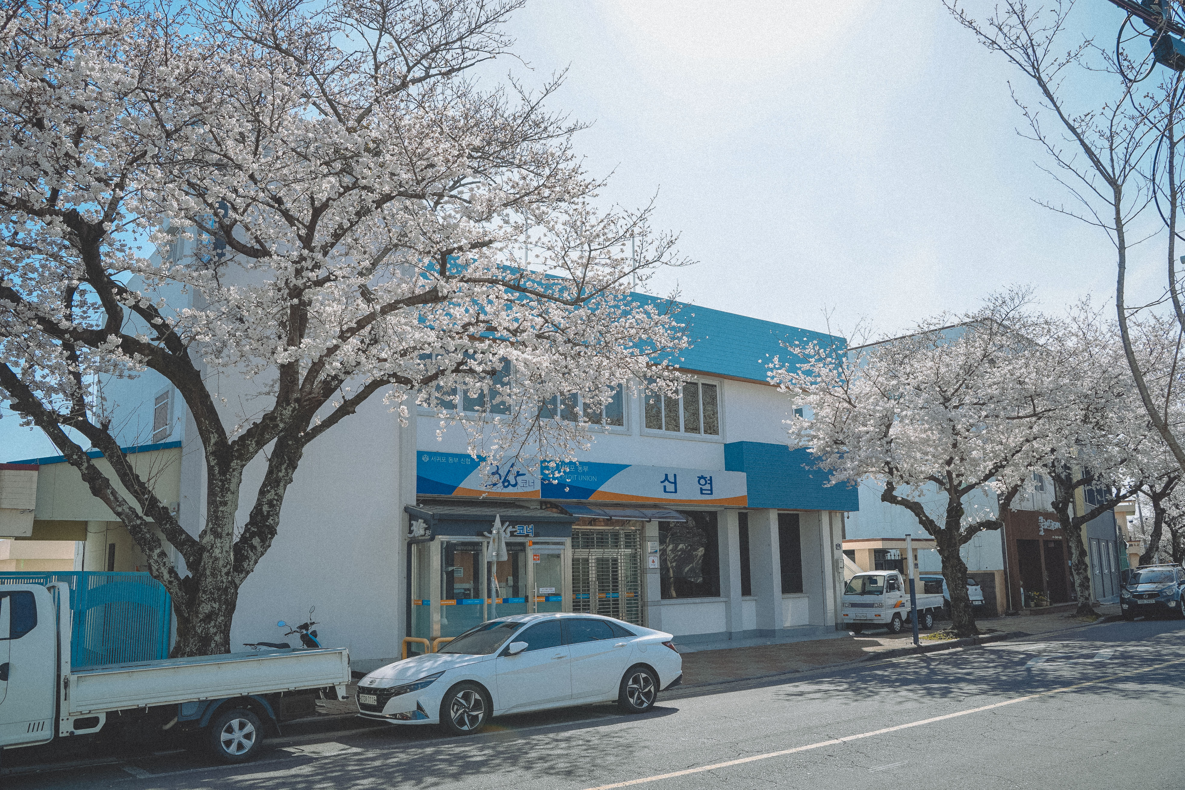 특히 서귀포시 효돈동은 작은 시골마을이라, 곳곳에 정겨운 가게들이 많은데, 이렇게 벚꽃과 함께 사진을 찍으니 감성이 너무 좋더라구요.