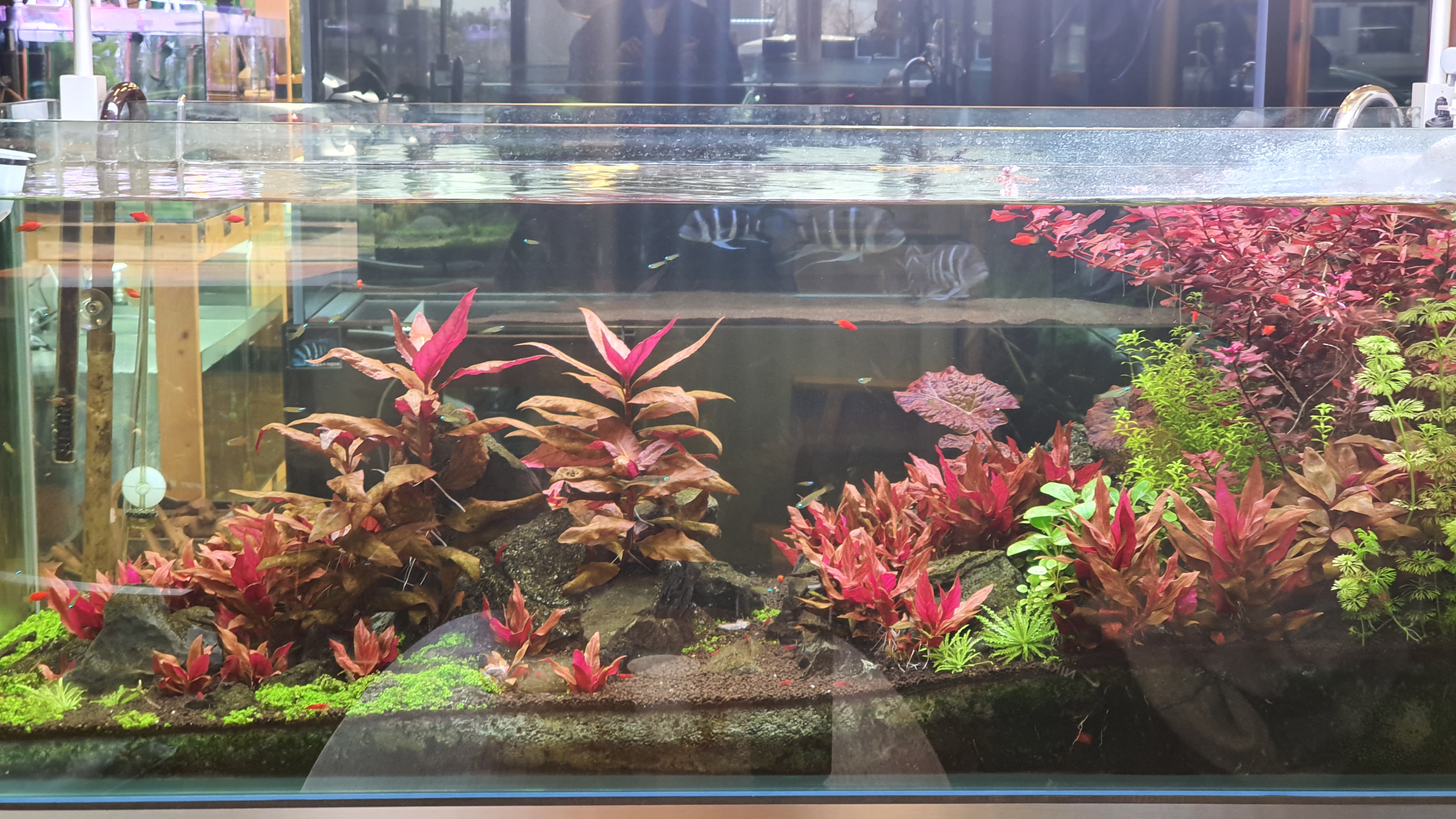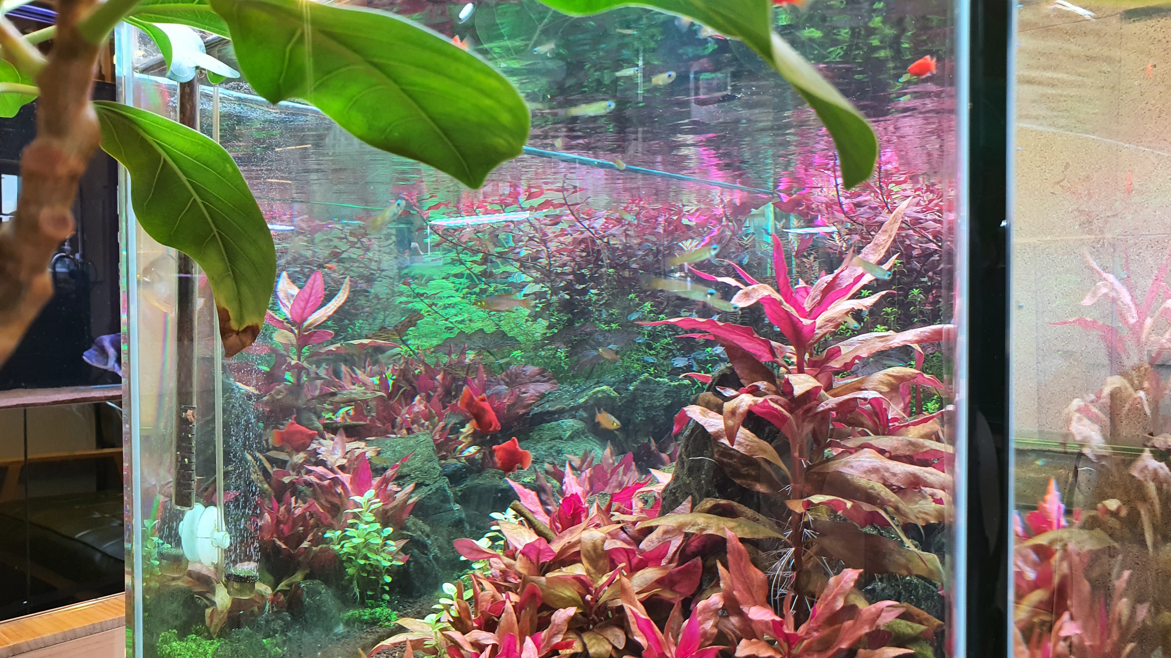 수조안에 수초도 다양하고 예쁘게 잘 관리되어있다.