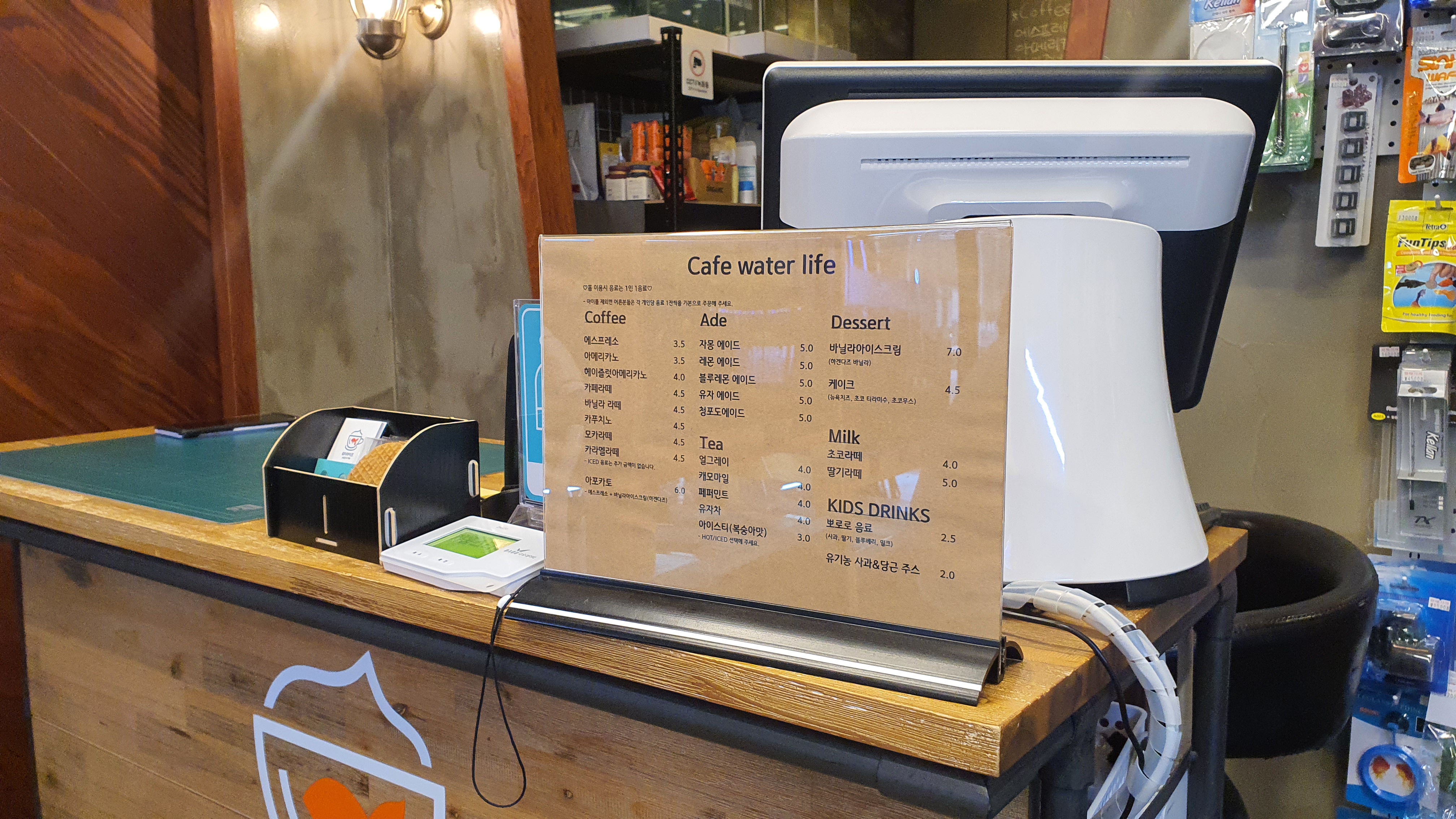 제주 아이와 갈만한곳 워터라이프 카페는 물고기를 구경하면서 커피도 마실 수 있지만 마음에드는 물고기도 구매할 수 있다.