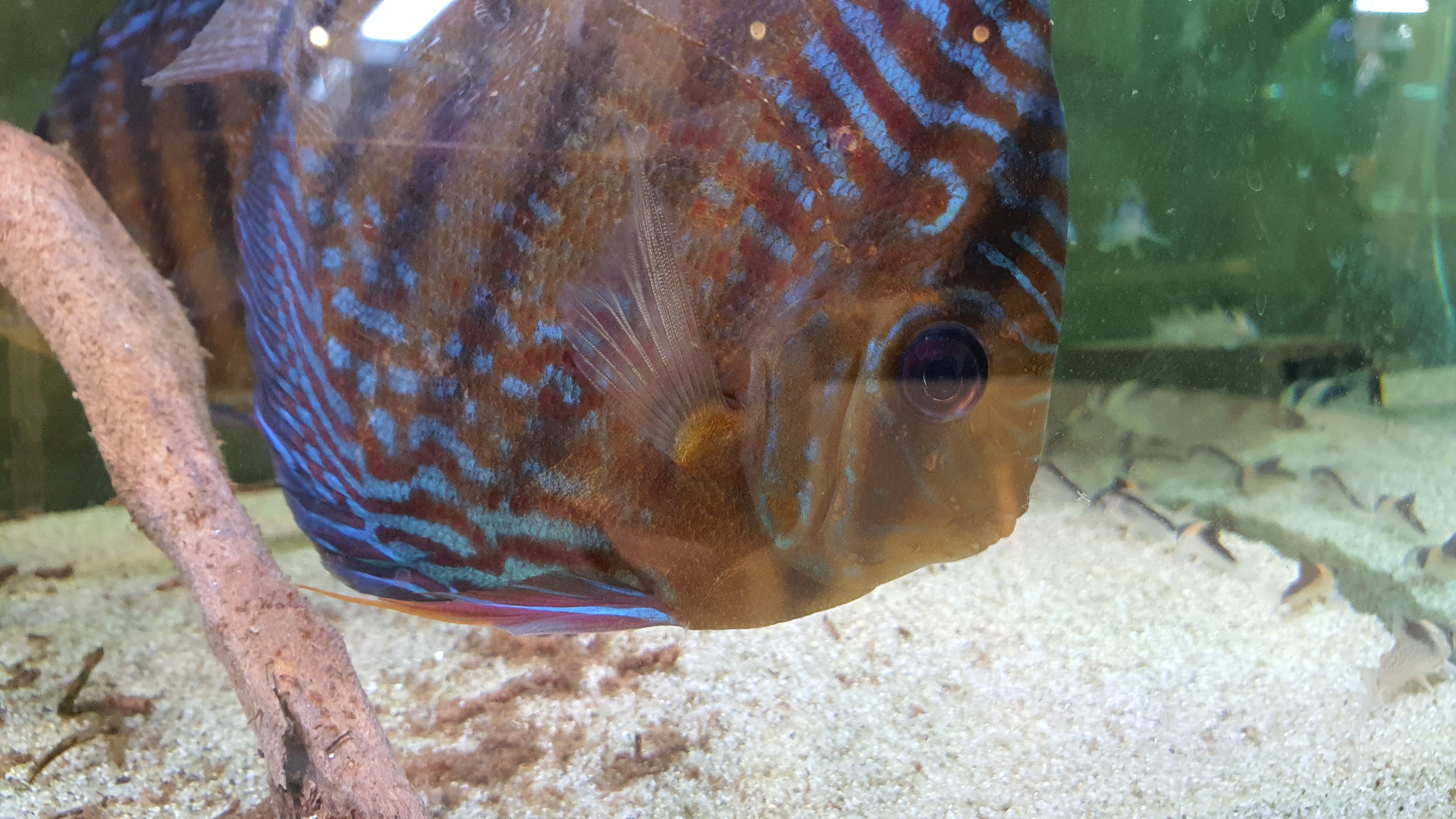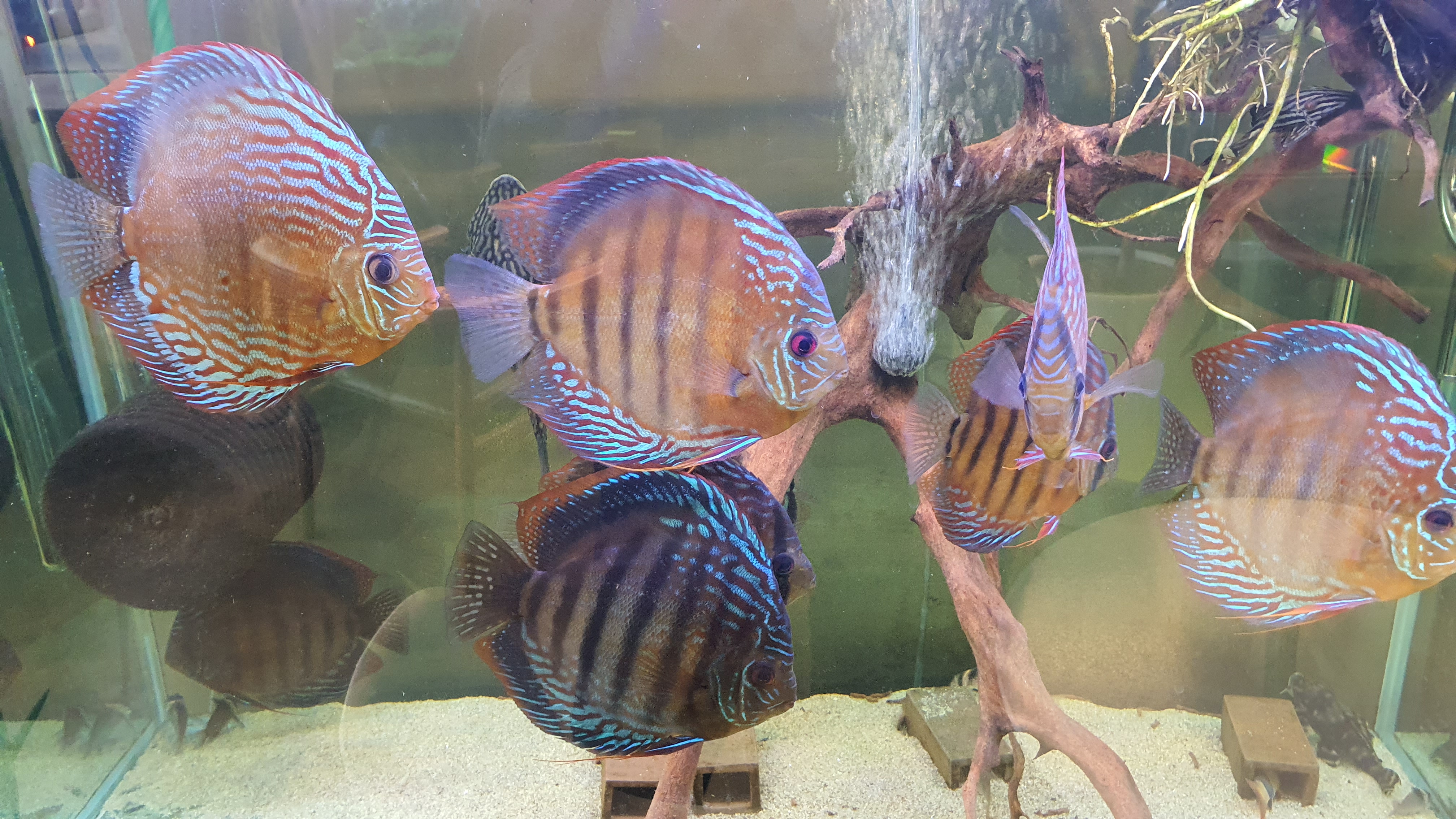 입구에서 가정 먼저 보이는 물고기는 바로 디스커스이다.