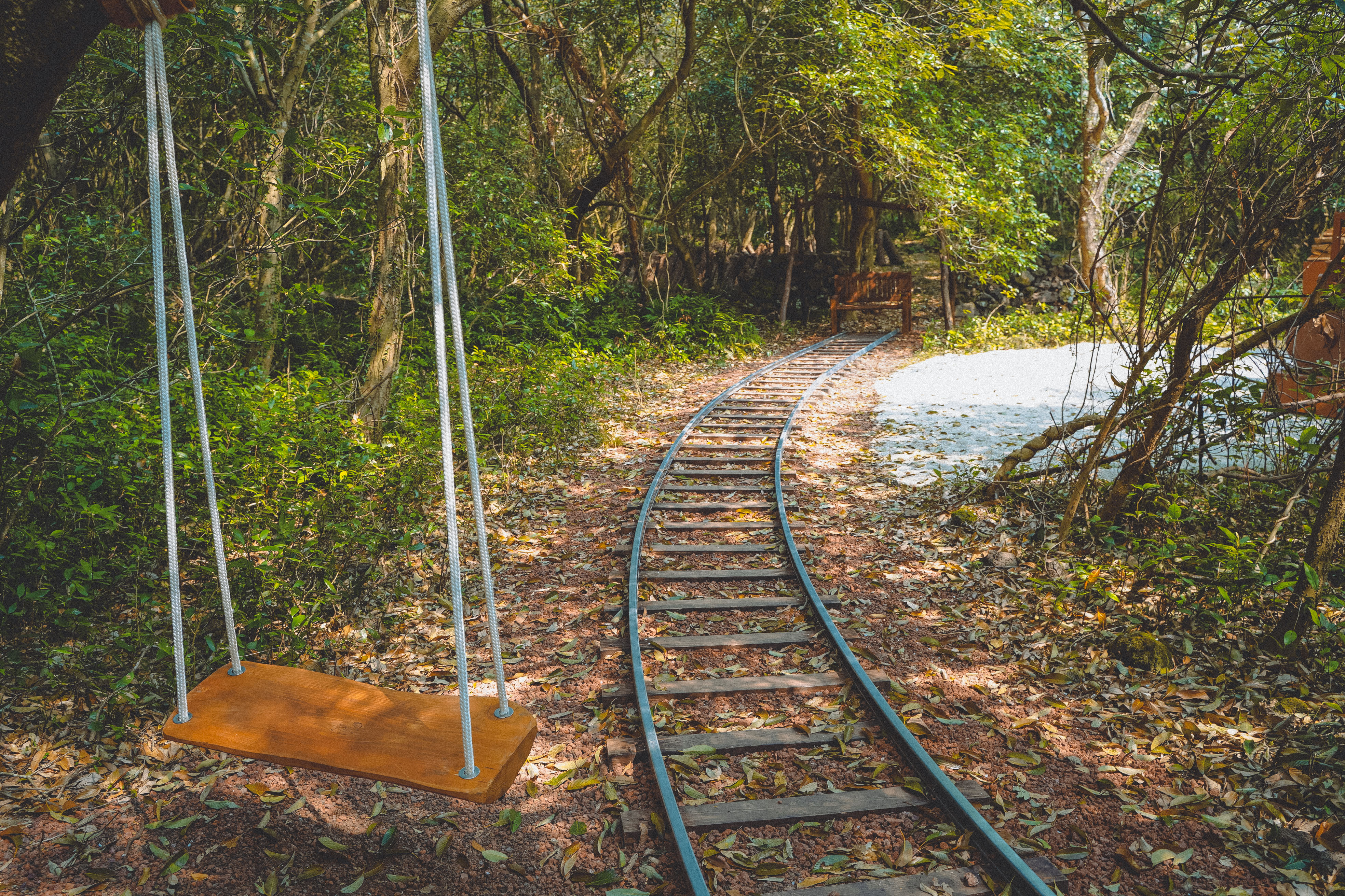 왼쪽에는 그네가 있고, 기찻길 끝에는 벤츠가 있어서 포토존으로 딱이에요.