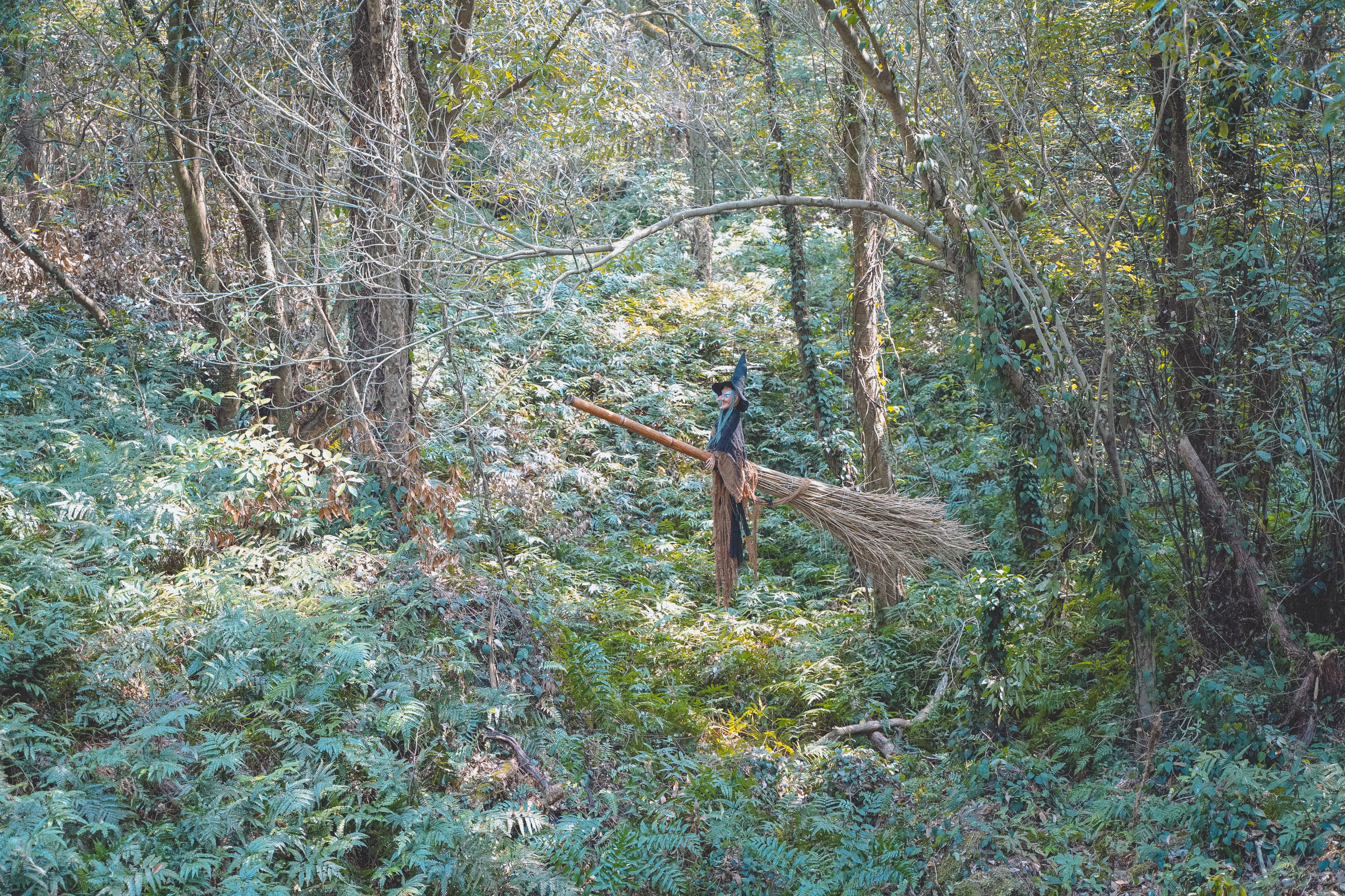 나무 공중에 매달아놓은 빗자루를 탄 마녀도 이색적이에요.