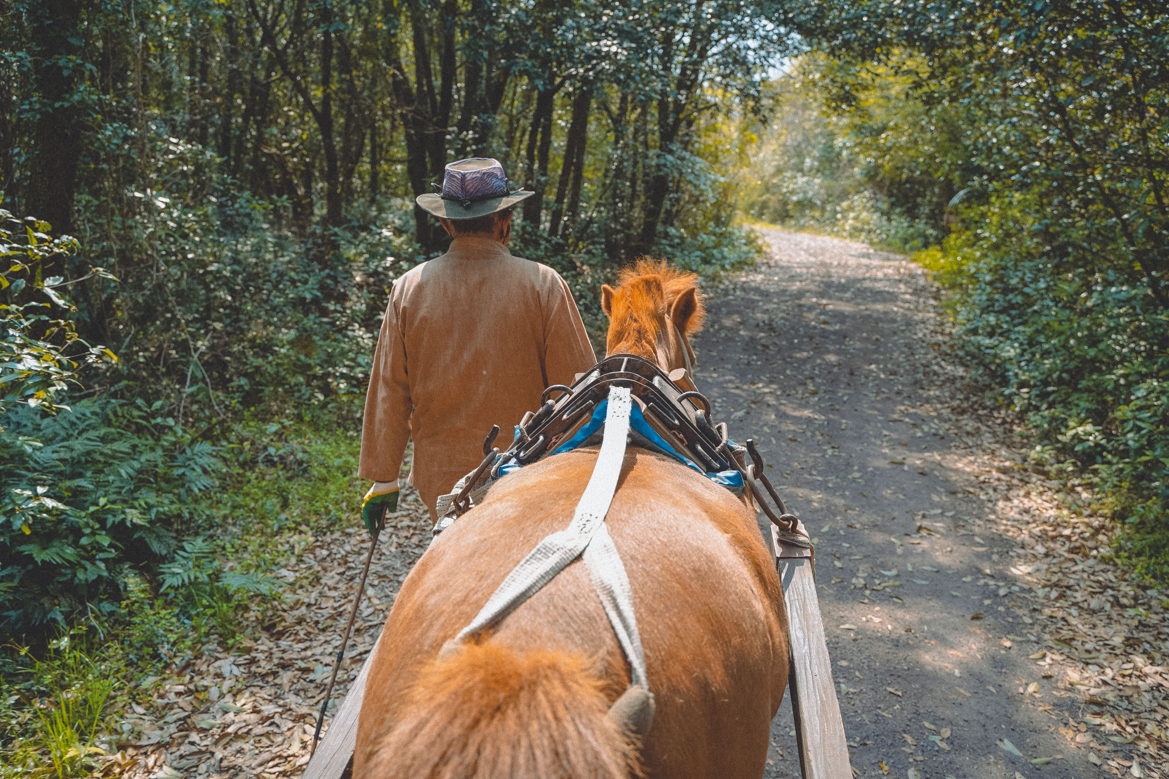 시간 마다 소와 말이 번갈아가며 숲길 이곳저곳을 왔다갔다 하는데,