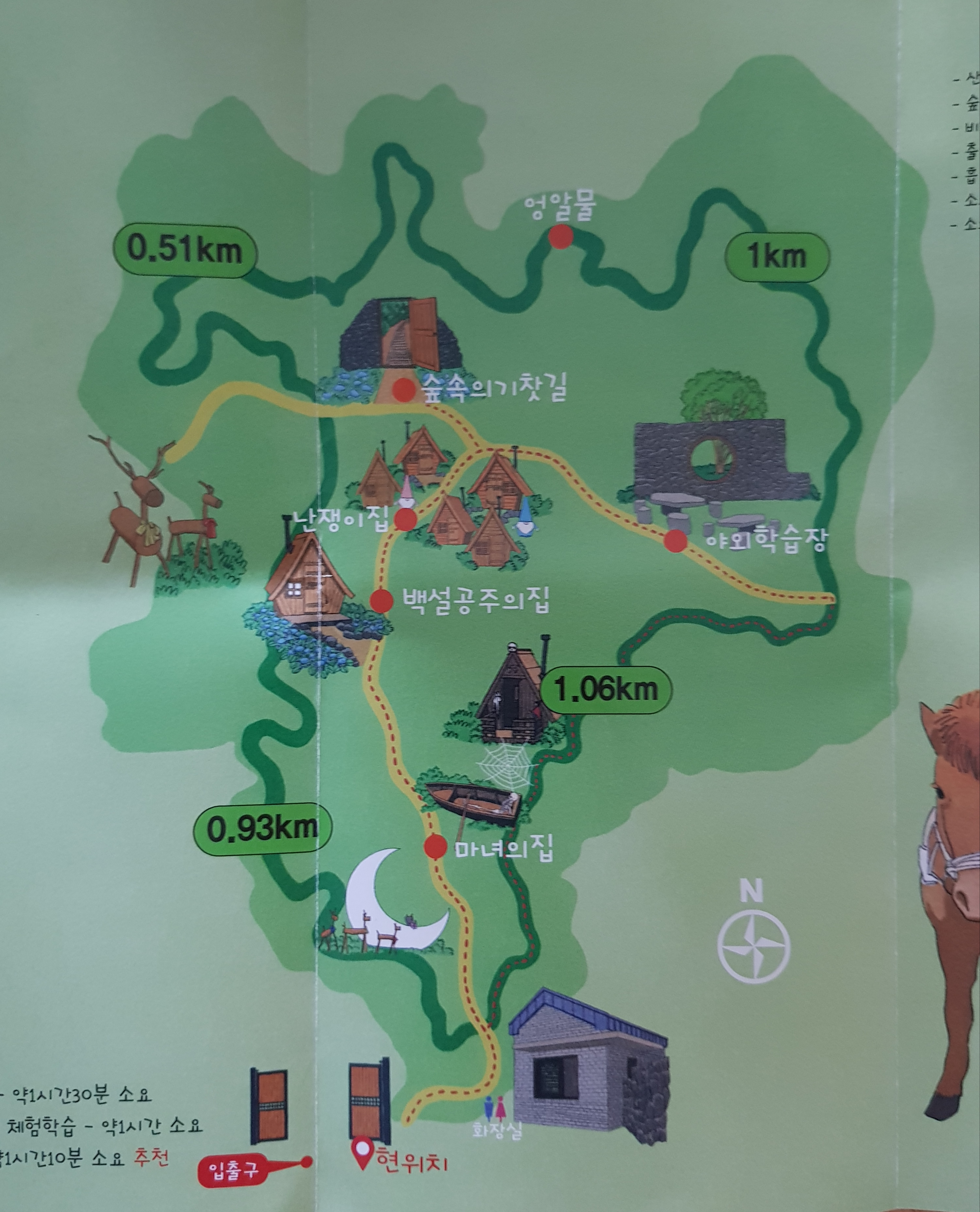 제일 킨 코스는 숲길탐방로로 약 1시간 30분 정도가 걸려요.