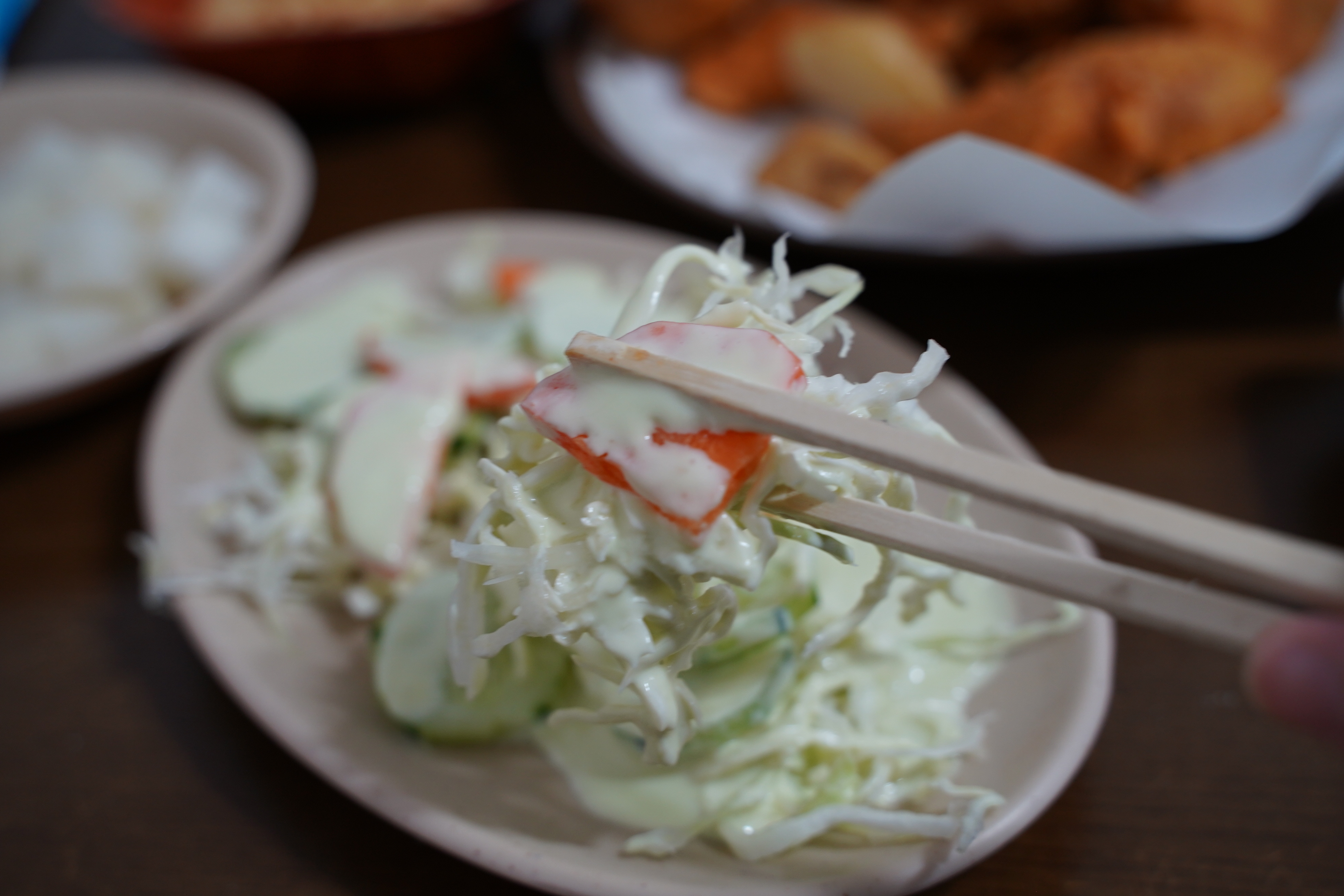 서귀포 치킨 맛집 토평치킨에서는 양배추, 오이, 당근이 함깨 나오는 샐러드가 있는데, 일반적으로 알던 샐러드와 달라서 더욱 정감있고 맛있게 먹었어요.
