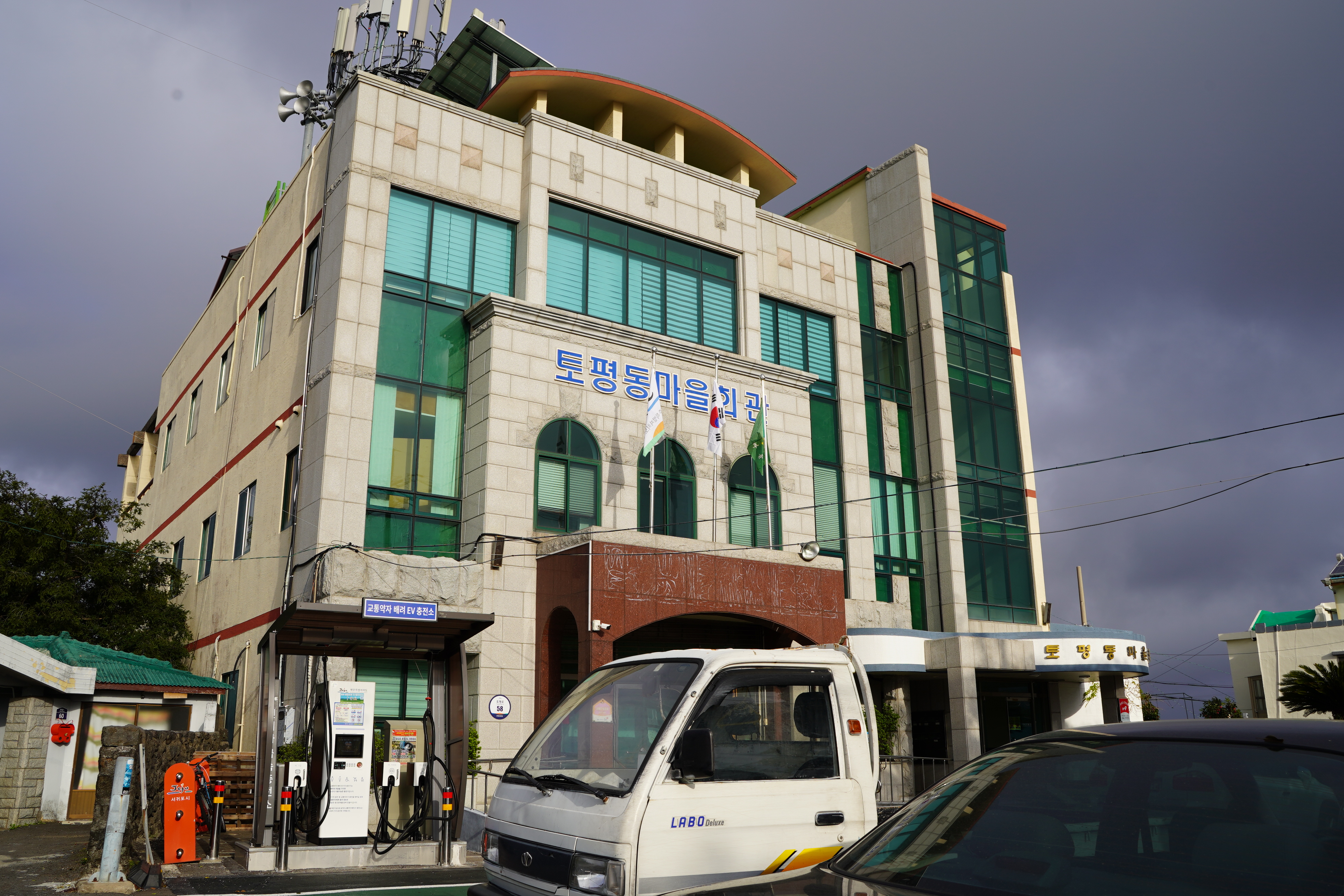 서귀포 치킨 맛집 토평치킨 바로 앞에는 마을회관이 있어서, 잠시 주차할 수 있었어요.