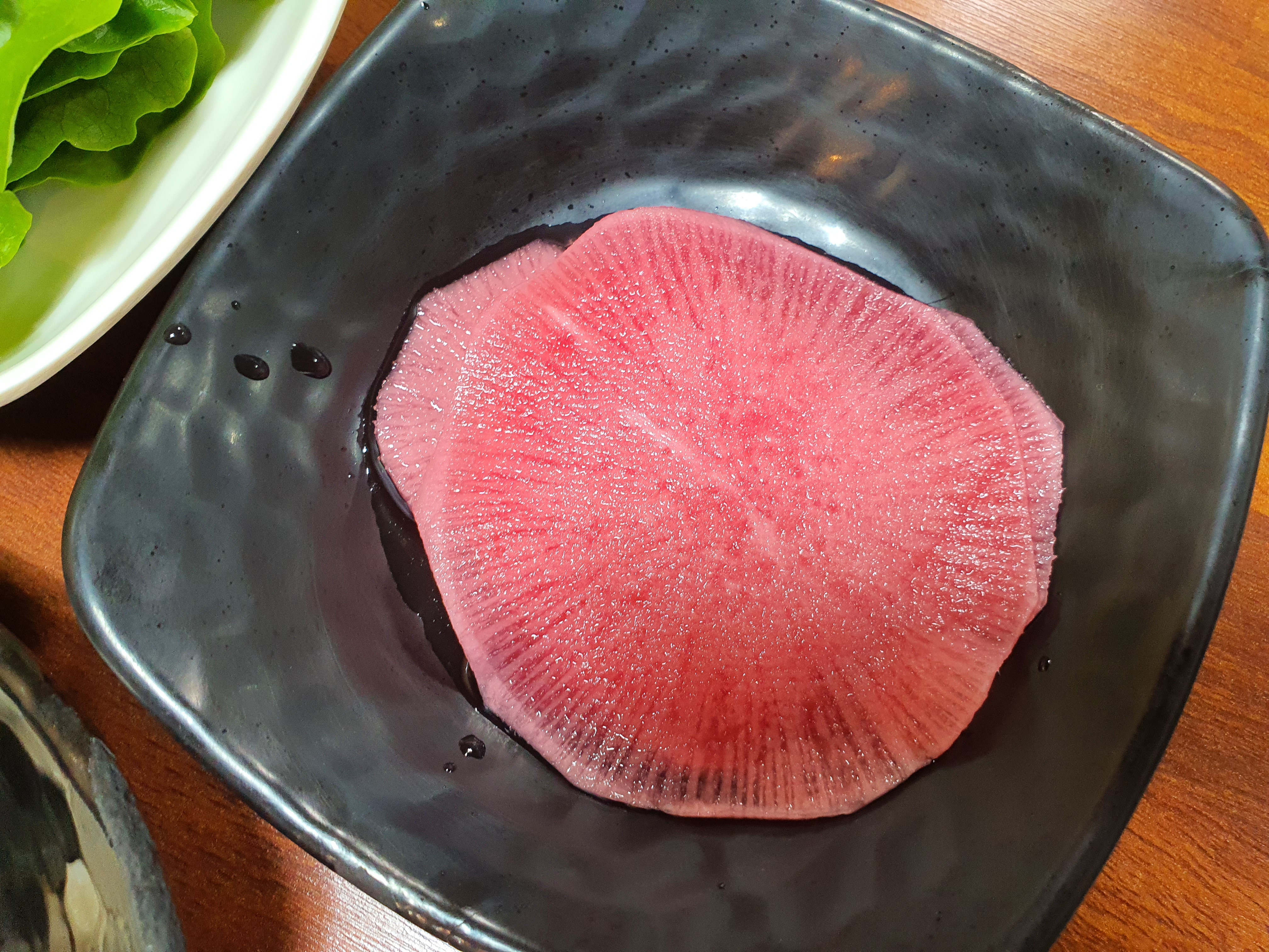 흑돼지 2인분을 주문했어요. 테이블이 회전이 빠른편이라서 고기의 질이 좋아보이고, 양도 딱 적당했어요.
