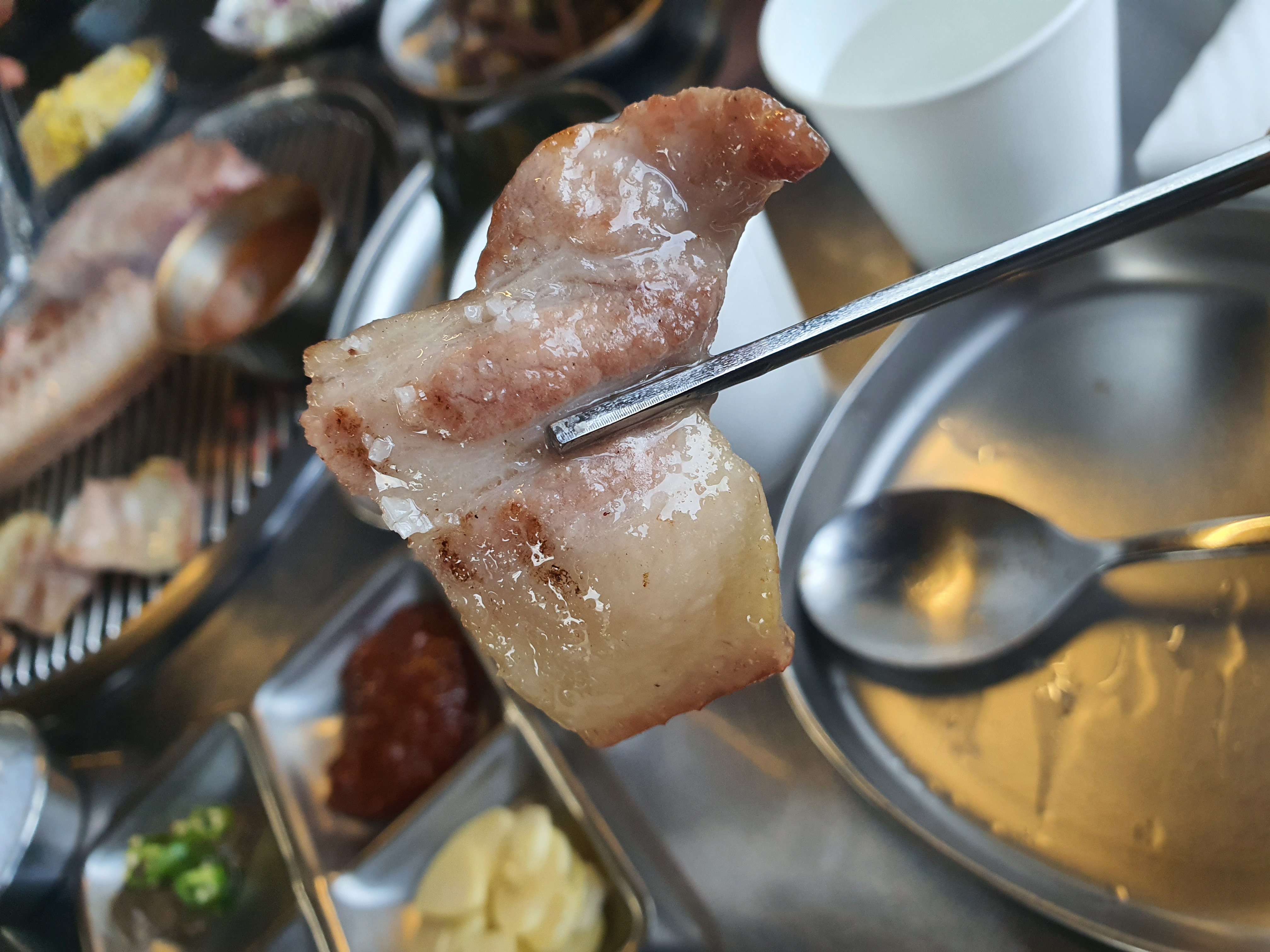 불판이 굉장히 뜨거워서 고기가 노릇노릇 잘 익어요.