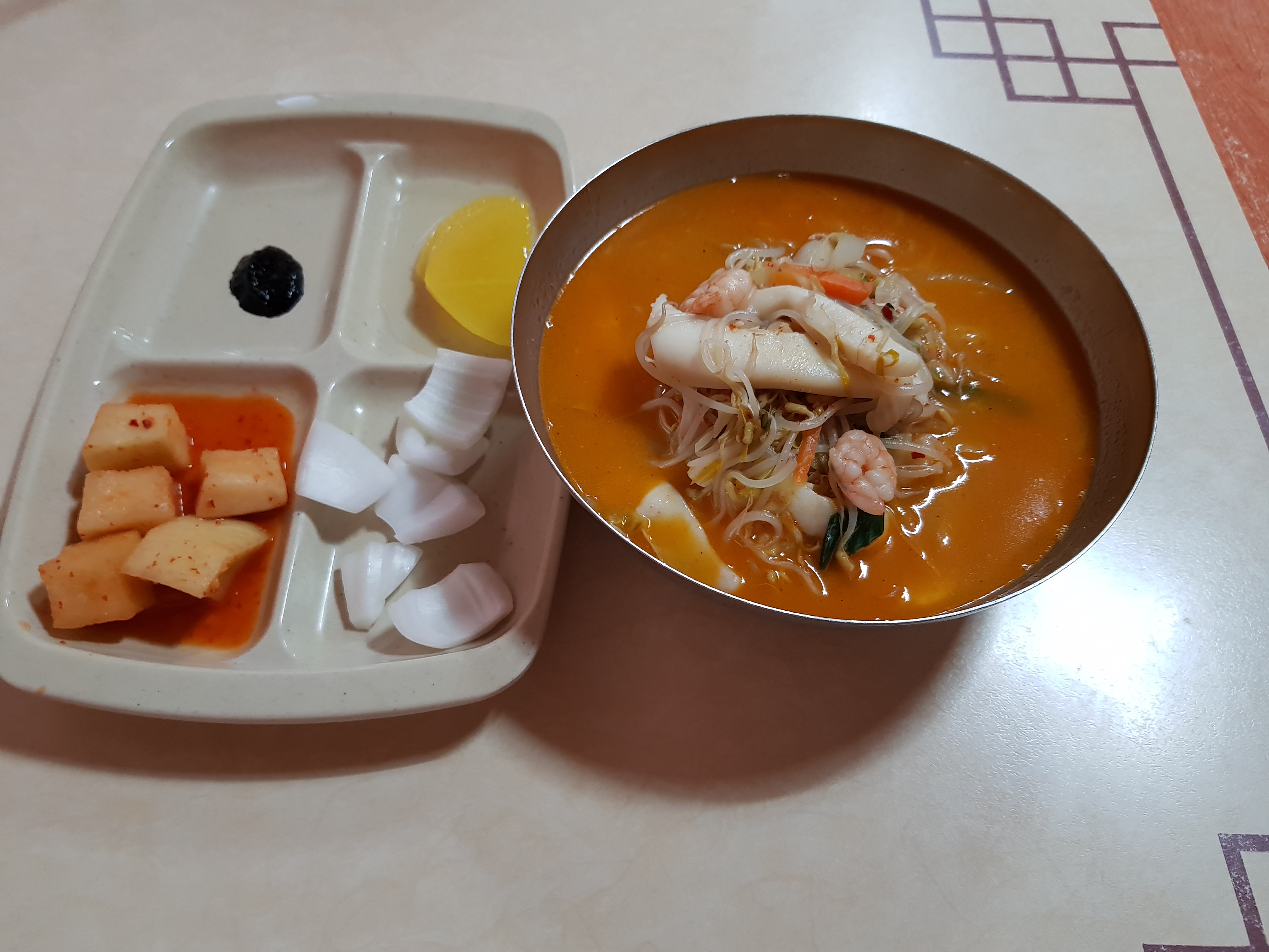오징어, 새우, 숙주나물 등 굉장히 시원한 국물맛을 내고 있어요.