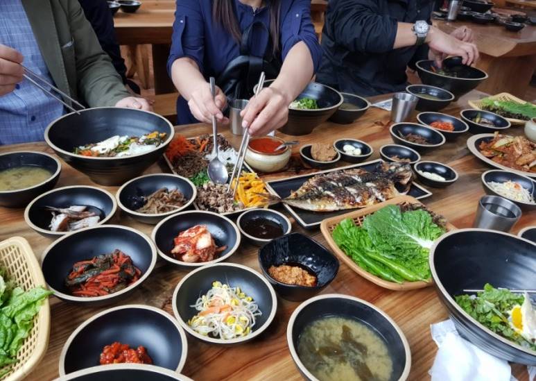 (산채비빔밥+고등어구이+8가지나물+각종쌈+계란후라이+국+뽀그리된장+기본반찬)