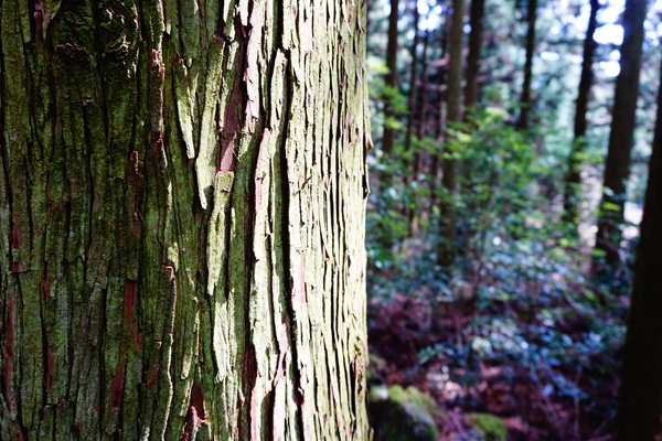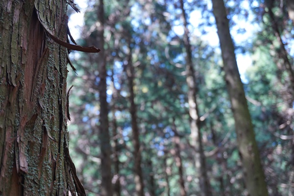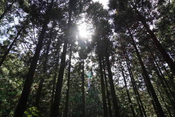숲길 양쪽 길을 따라 서어나무, 편백나무,
