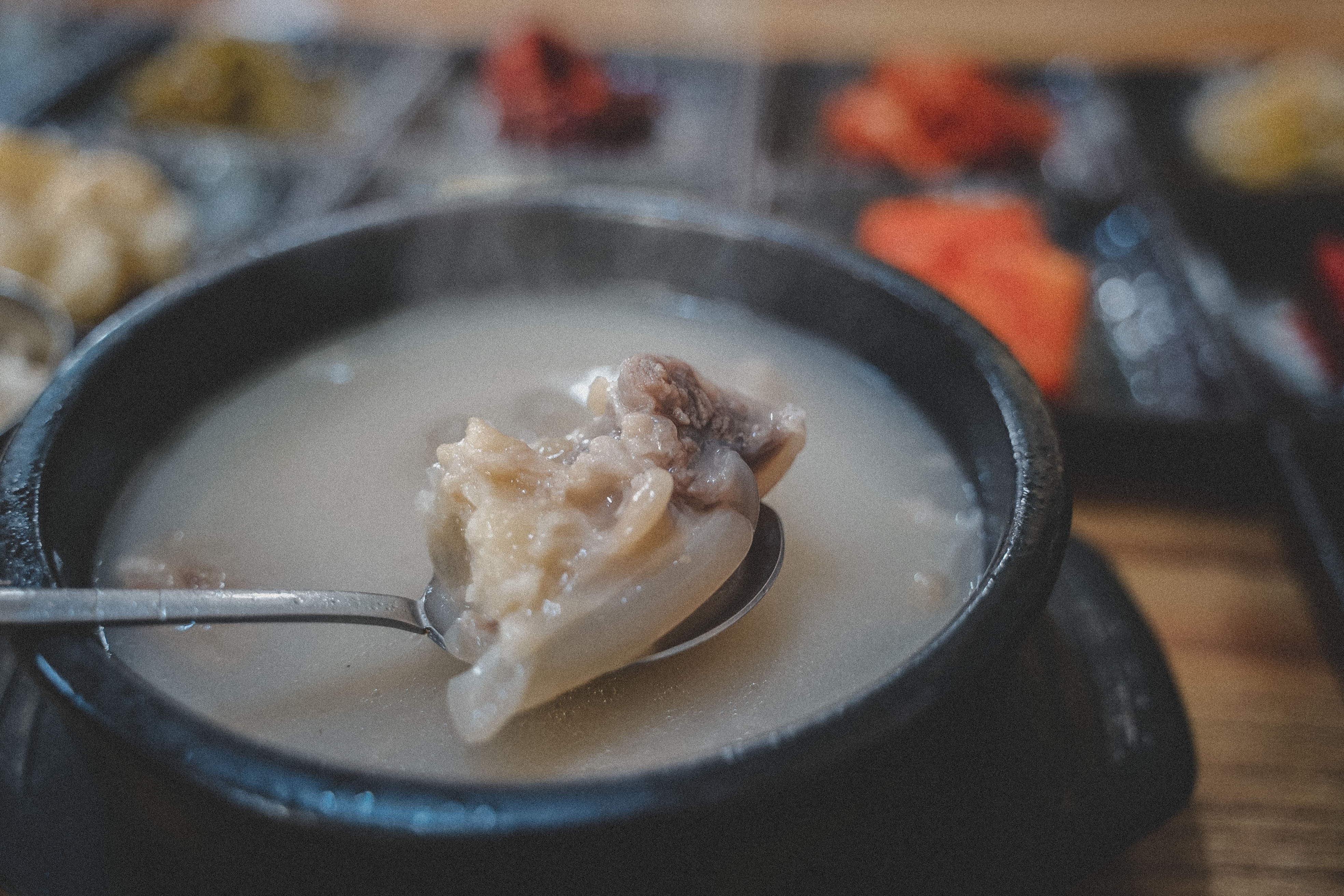 뜨끈한 도가니탕은 뚝배기에 나와 오랫동안 따뜻하게 먹을 수 있다.