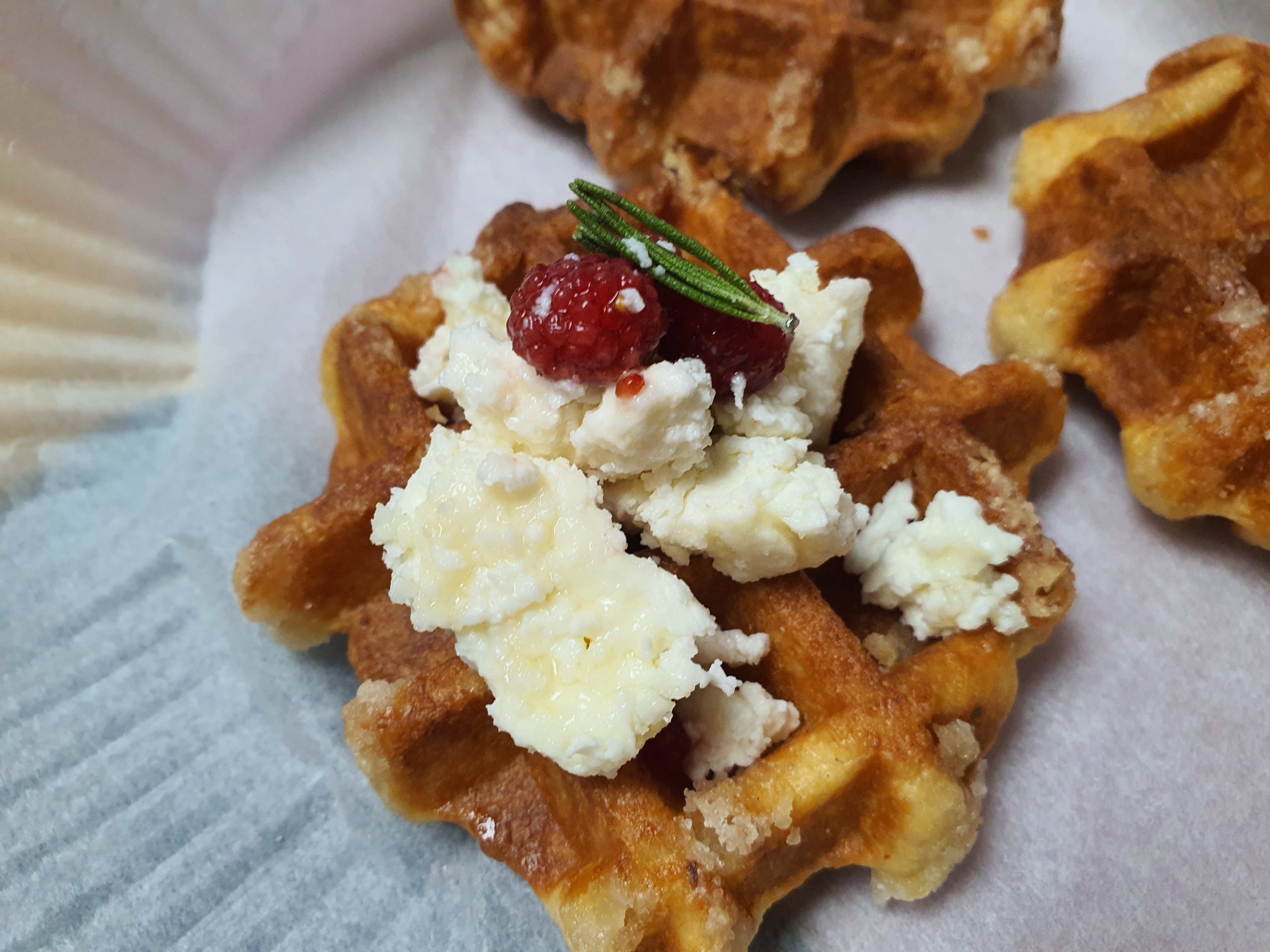 그리고 요즘은 냉동빵이 잘 나와서 이렇게 와플을 사서 에어프라이어에 한번 돌린 후 리코타 치즈와 함께 먹었어요.