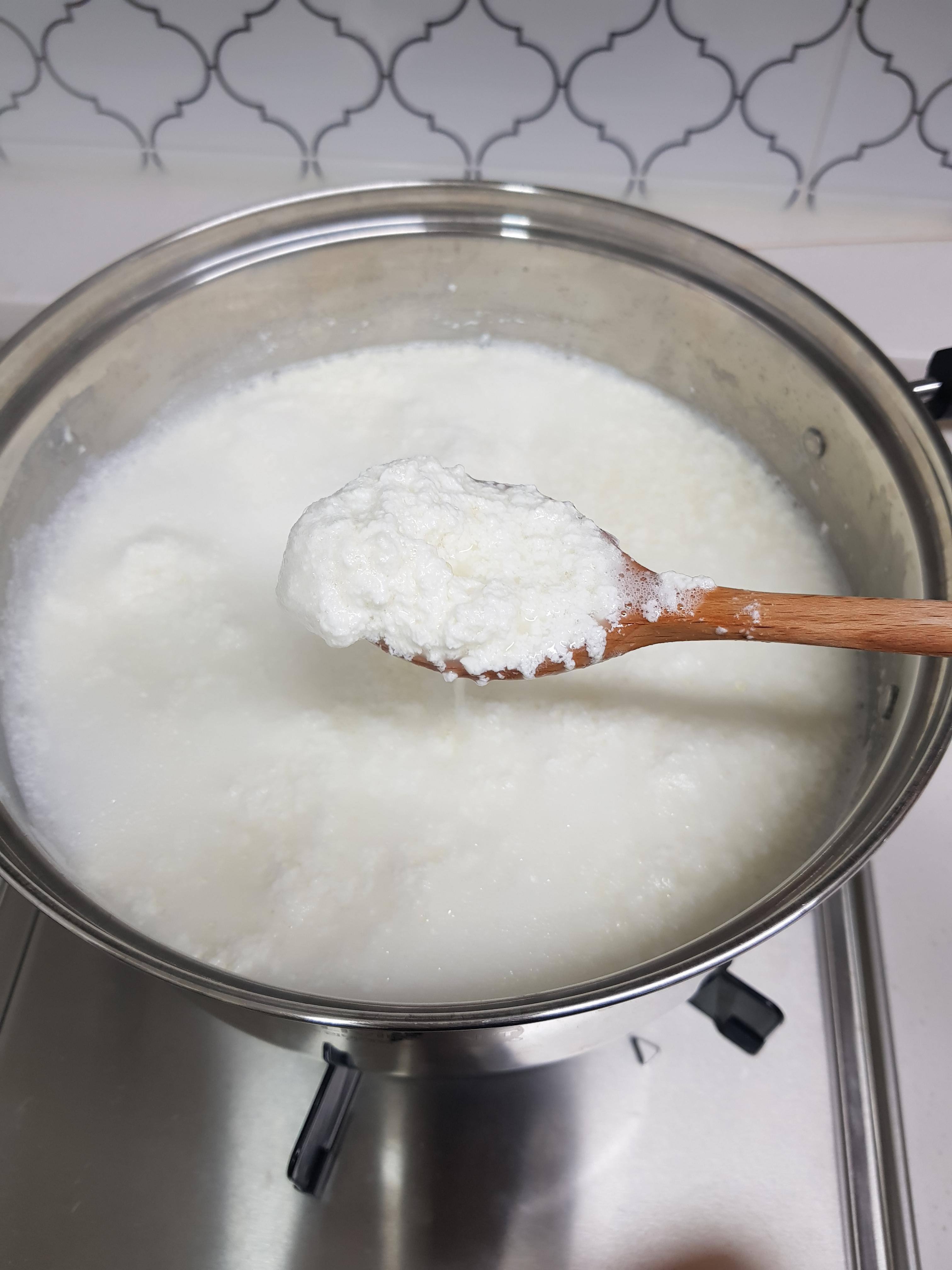 몽글몽글 순두부처럼 치즈가 만들어지고있어요.