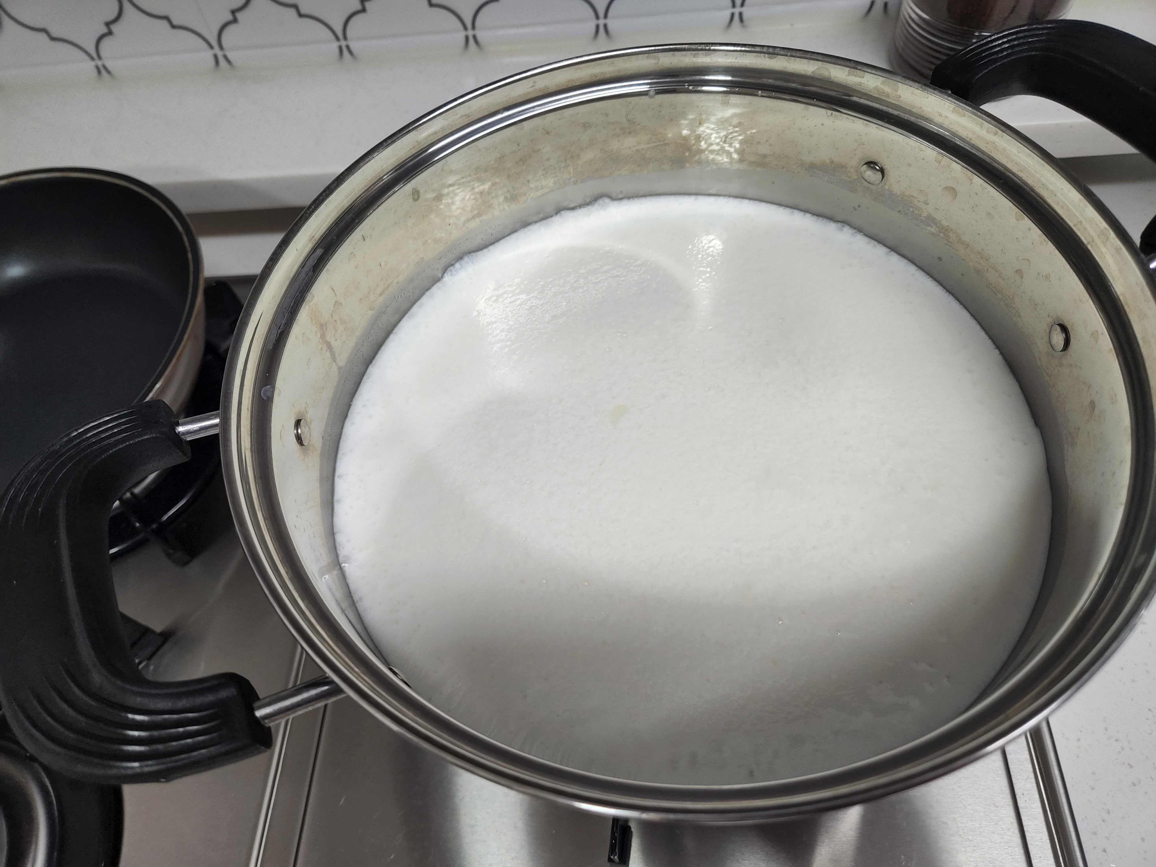 3. 확 끓으면 중불로 낮추기