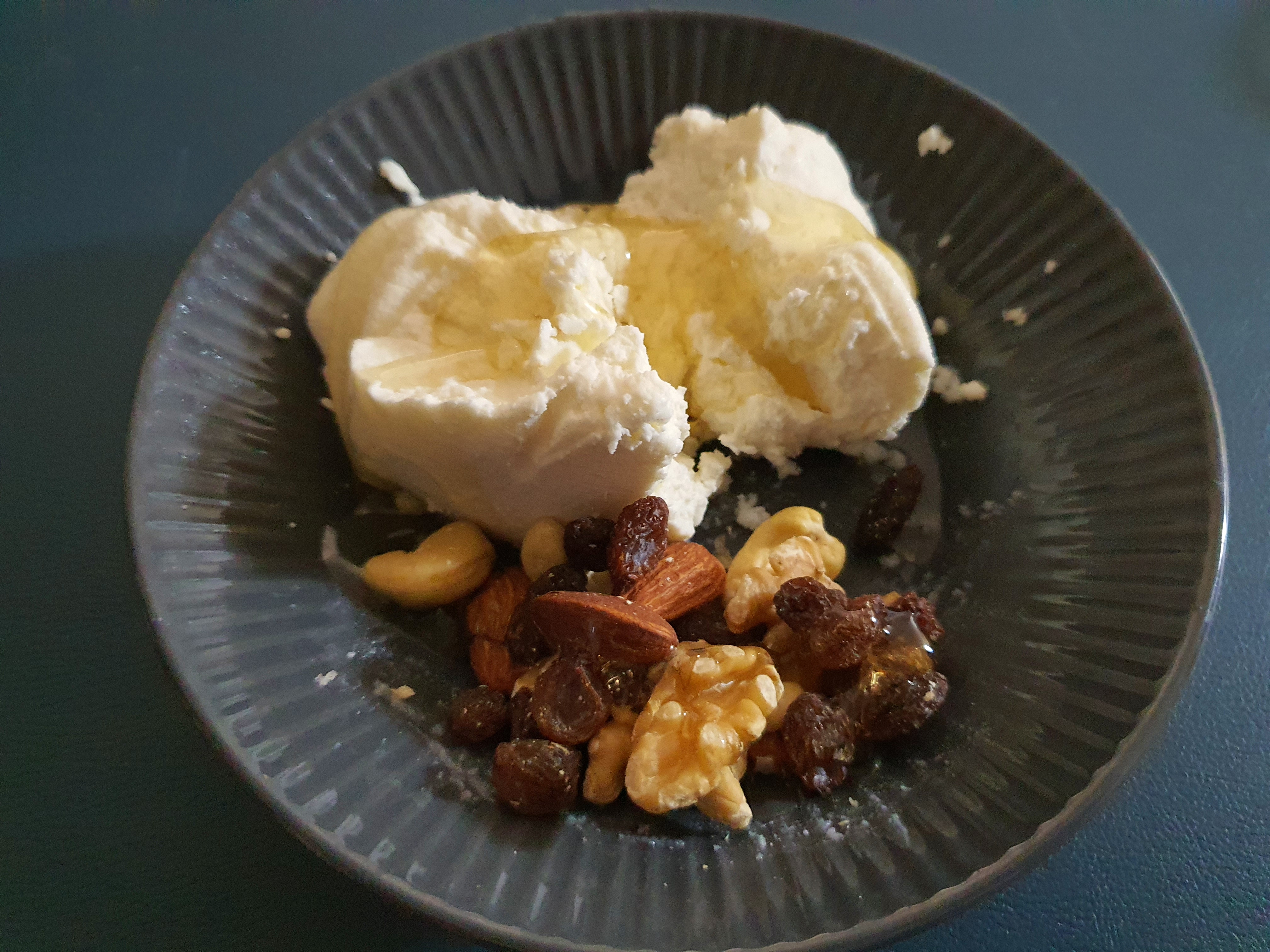 아침에 간단히 먹고 싶을땐 리코타치즈 만들기로 완성된 치즈와 견과류를 꿀과 함께 먹었어요.