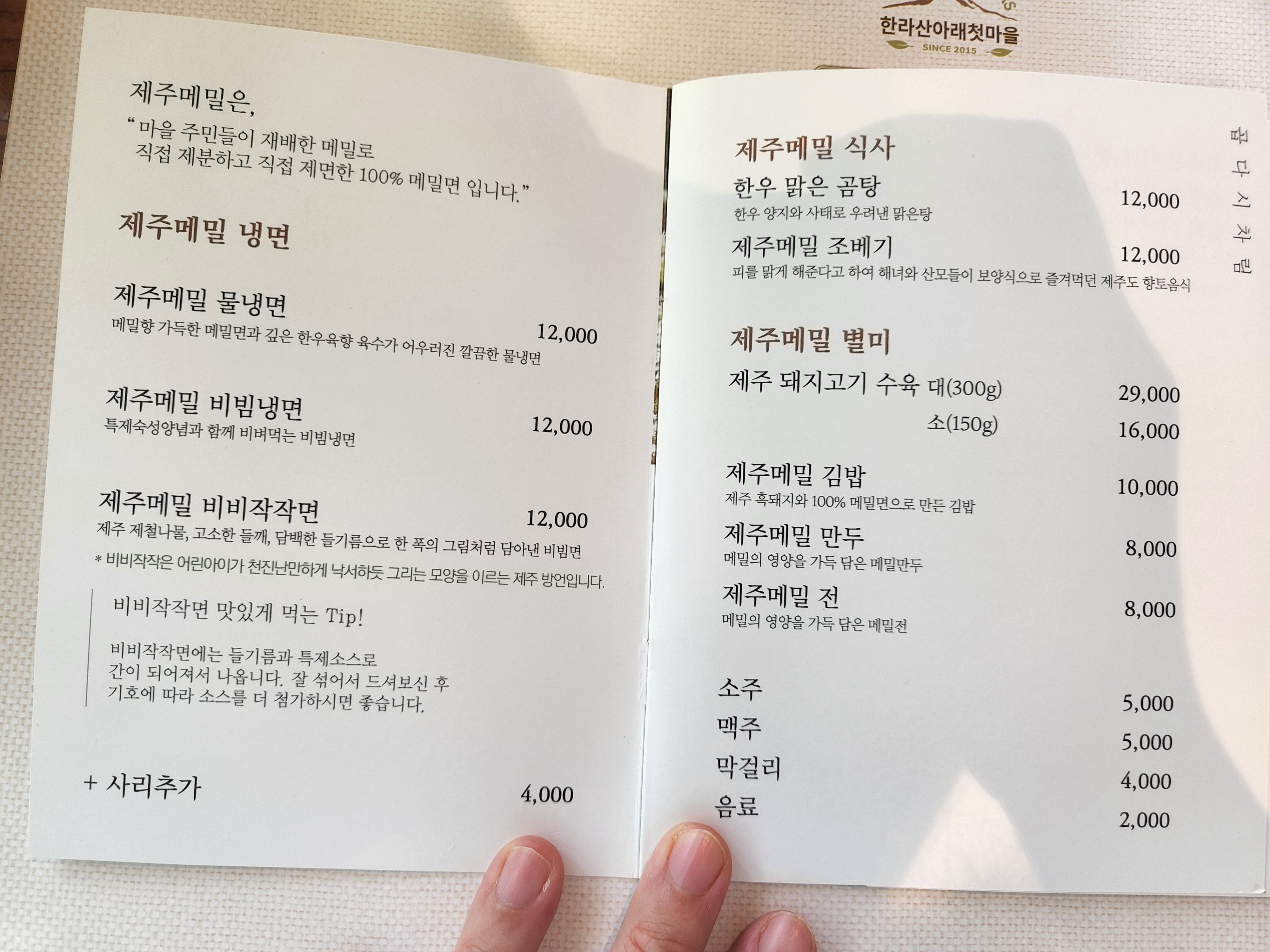 메밀로 만드는 음식 전문이기 때문에 대부분 메뉴에 메일이 들어가요
