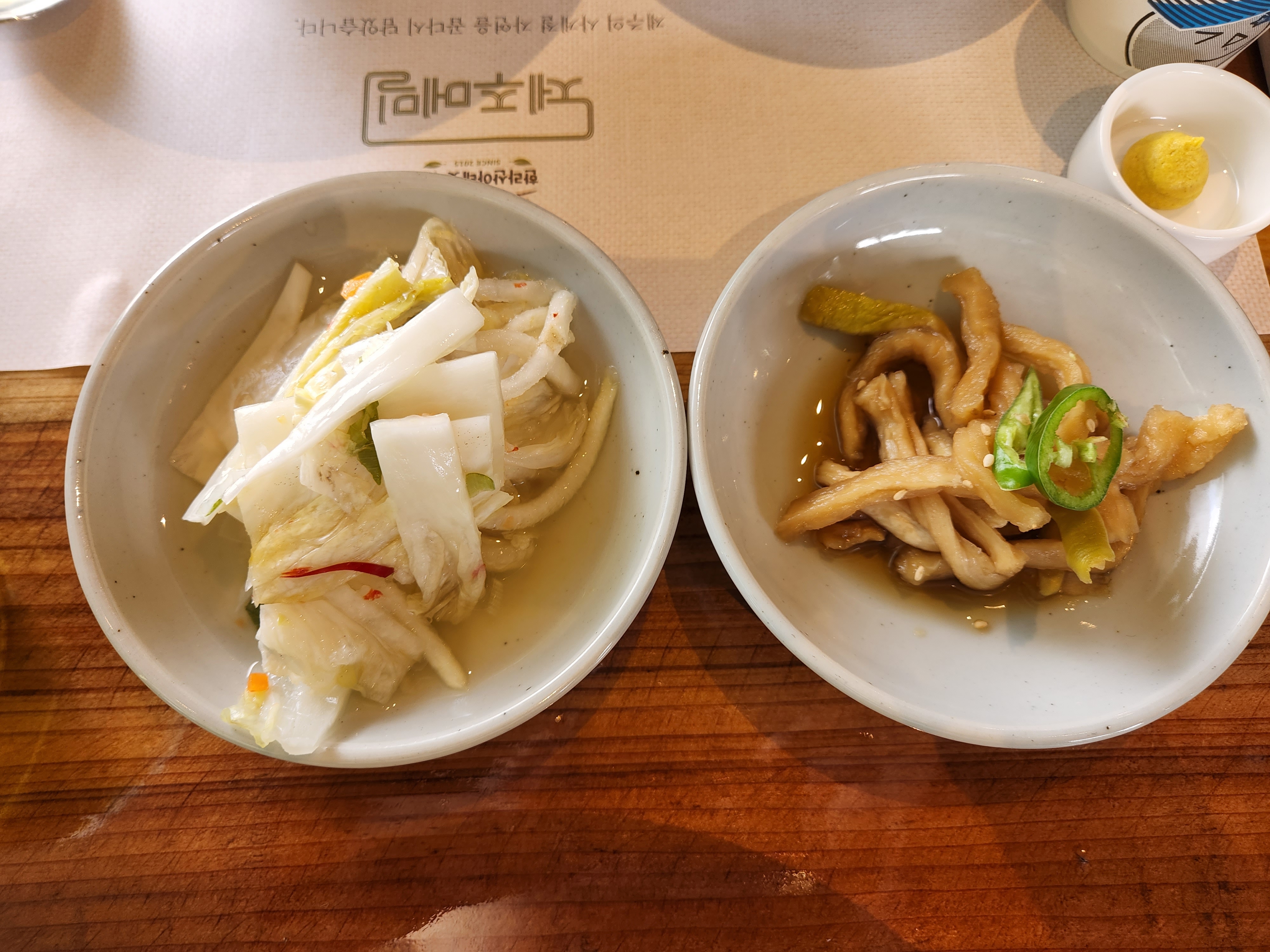 기본반찬은 백김치와 무말랭이 장아찌에요.