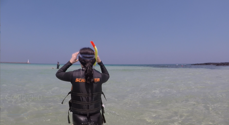 본격적으로 제주 스노클링을 즐기는데 생각보다 안쪽은 물깊이가 정말 깊었어요.
