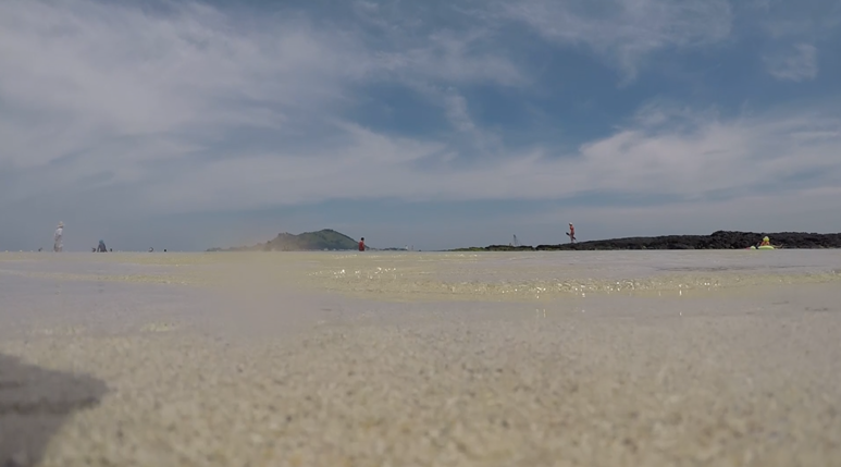 주변에 돌이 없어서 물고기나 바다생물은 잘 볼 수 없다는 점이에요.